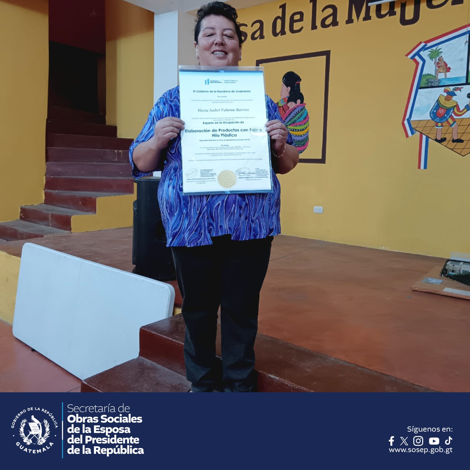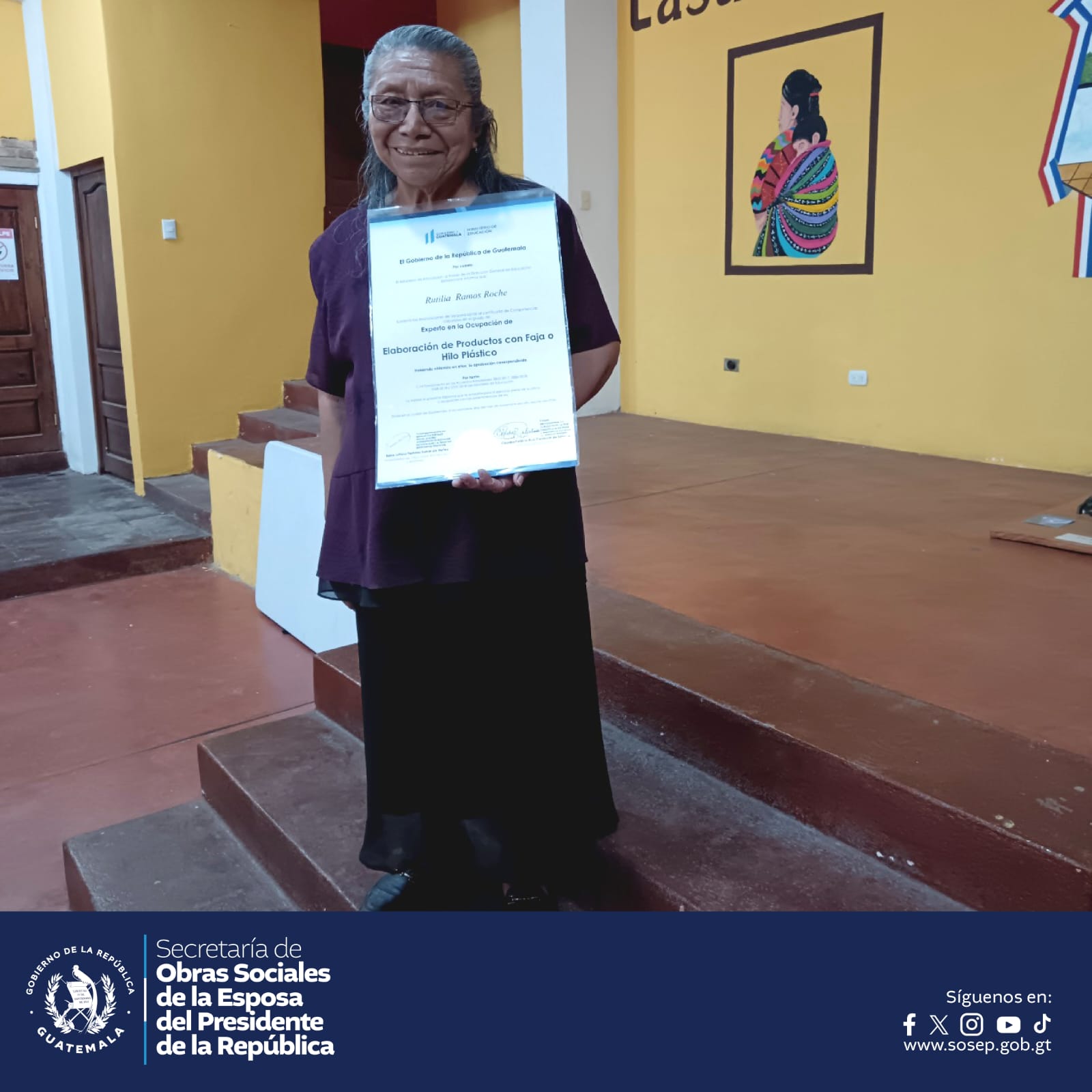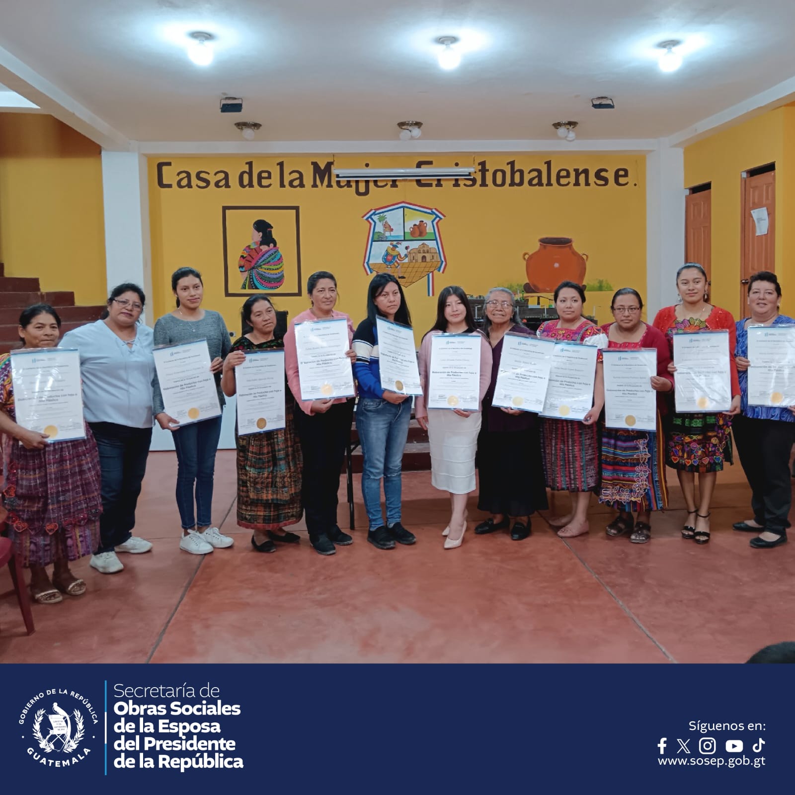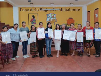 La Dirección de Mejoramiento de las Condiciones Socioeconómicas de la Mujer de la SOSEP con el apoyo de la Dirección General de Educación Extraescolar (DIGEEX), certifica artesanas de San Cristóbal Totonicapán