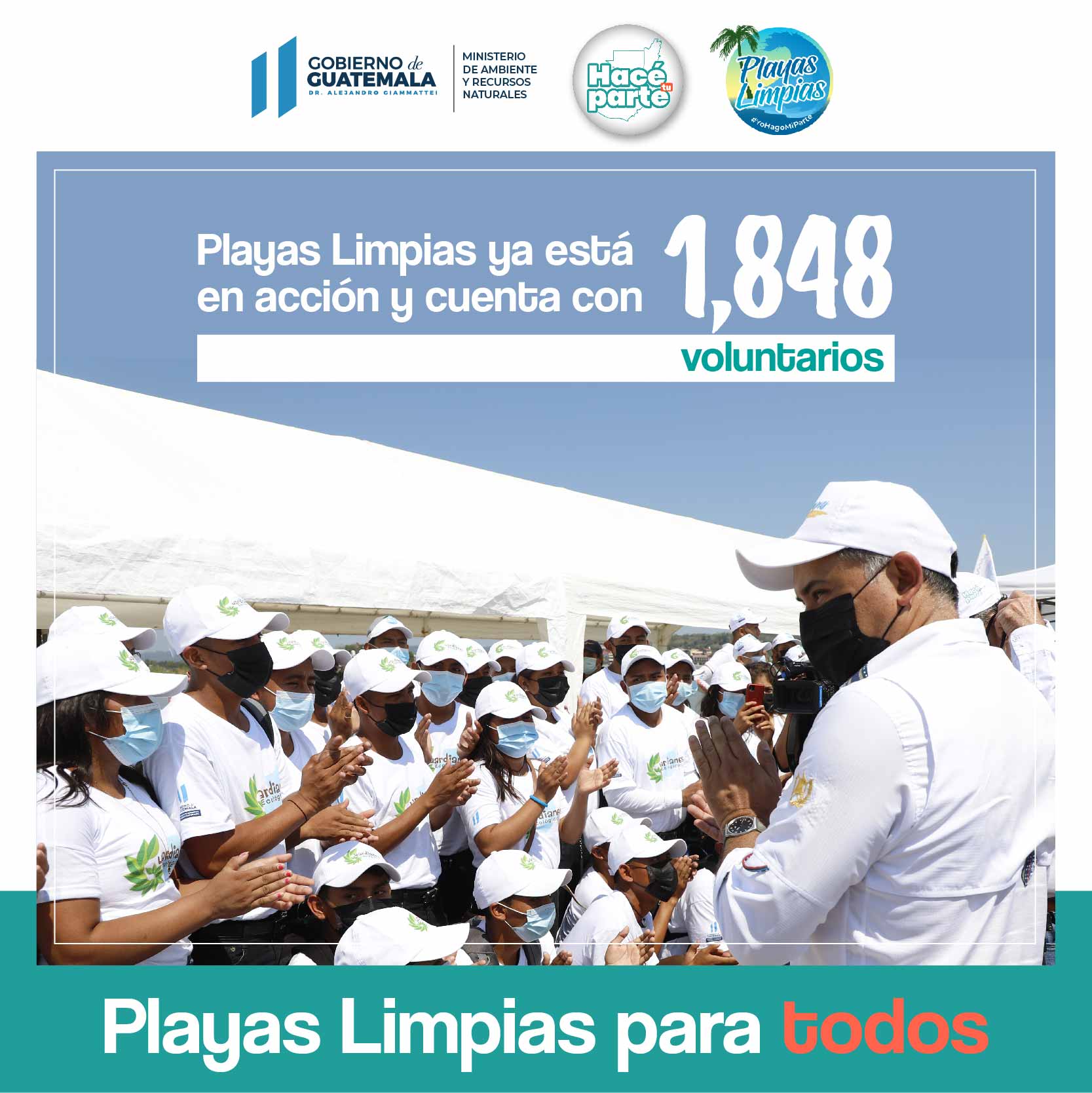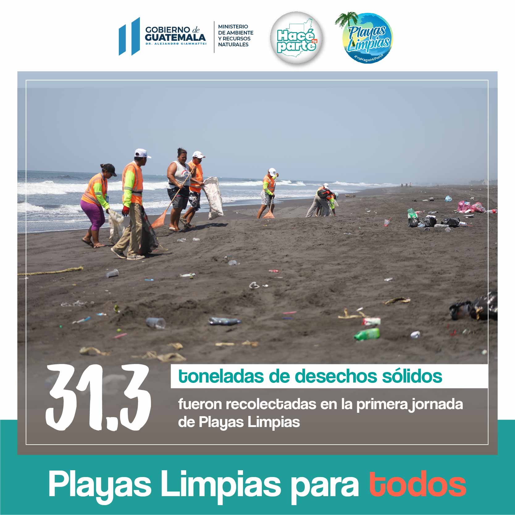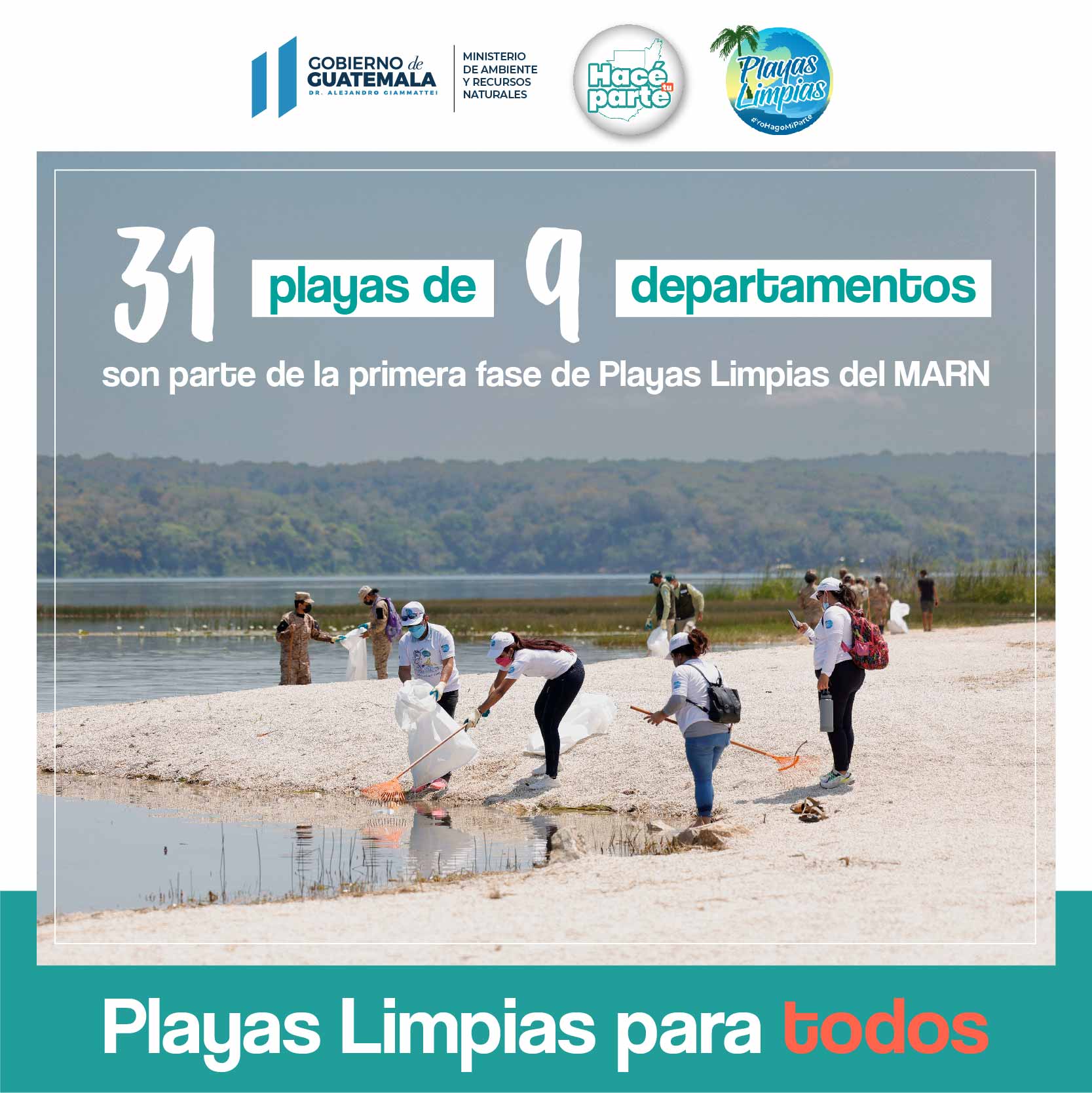 Playas Limpias es un programa impulsado a nivel nacional por el ministro Mario Rojas Espino, y respaldado por el presidente Alejandro Giammattei, con el objetivo de eliminar la contaminación y promover la educación ambiental.
