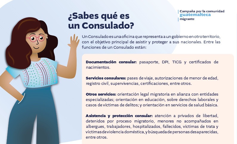 Como parte de la campaña por la comunidad guatemalteca migrante "Cerca de ti, siempre", el Ministerio de Relaciones Exteriores (MINEX) comparte una serie de publicaciones para informar sobre los servicios que ofrece la Red Consular de Guatemala a los connacionales migrantes, a fin de brindarles la cercanía de su país.