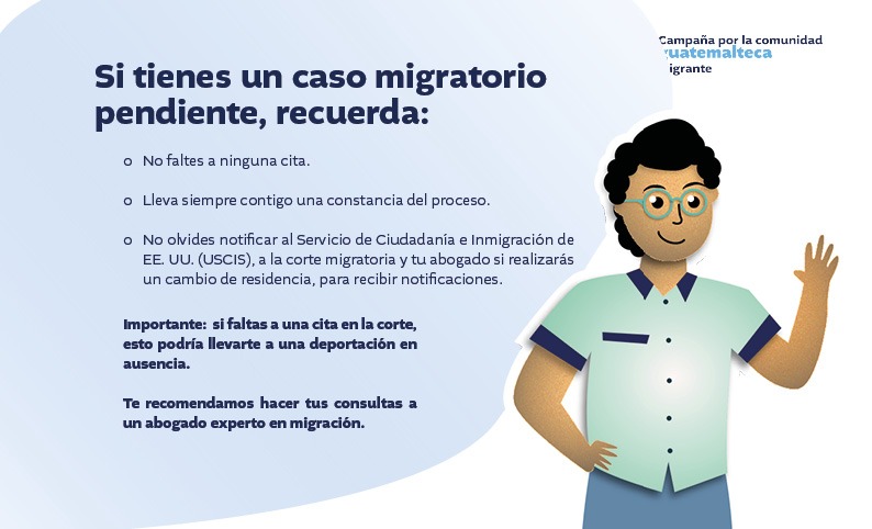 - No olvides notificar al Servicio de Ciudadanía e Inmigración de EE. UU. (USCIS), a la corte migratoria y tu abogado si realizarás un cambio de residencia, para recibir notificaciones.