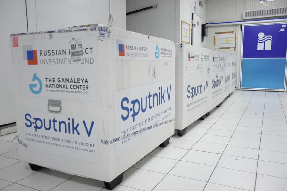 La Ministra de Salud Dra. #AmeliaFlores recibió el lote de 200 mil vacunas #SputnikV , adquiridas por medio de compras directas con el Gobierno Ruso.