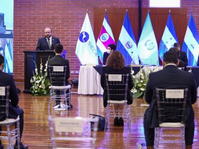 En seguimiento a la decisión de las autoridades de Guatemala en la que se decreta el estado de prevención el pasado 13 de julio de 2021 por un período de 15 días ante la situación sanitaria del SARS-CoV-2, la SIECA limitó significativamente la presencia de invitados, por lo que el evento fue transmitido de manera virtual para contar con la participación de las autoridades de los seis países que conforman el COMIECO, el Consejo Sectorial de Ministros de Transporte (COMITRAN) y el Comité Aduanero Centroamericano; además de otras instancias del Subsistema de Integración Económica y socios para el desarrollo.