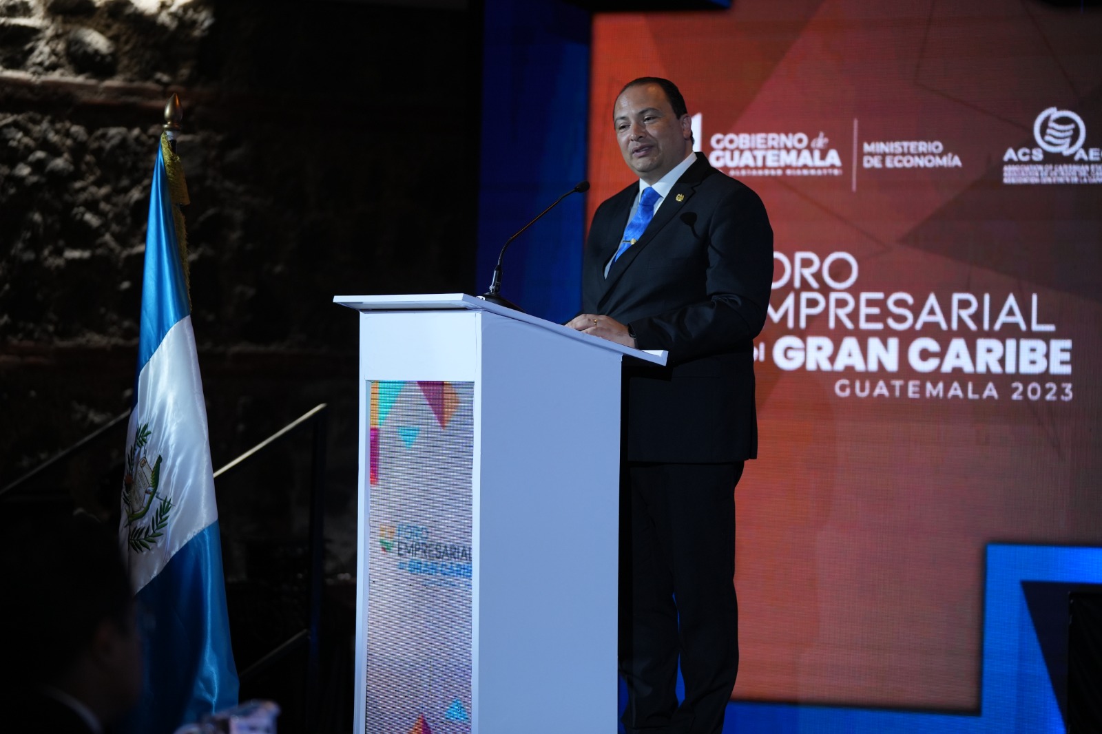 Antigua Guatemala, 9 de mayo de 2023. El ministro de Relaciones Exteriores de Guatemala, Mario Búcaro, intervino en la apertura del XV Foro Empresarial del Gran Caribe, que se desarrolla el 9 y 10 de mayo en la Antigua Guatemala, como parte de las actividades de la IX Cumbre de Jefes de Estado de la Asociación de Estados del Caribe (AEC).
