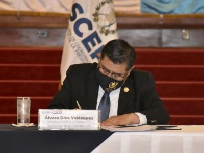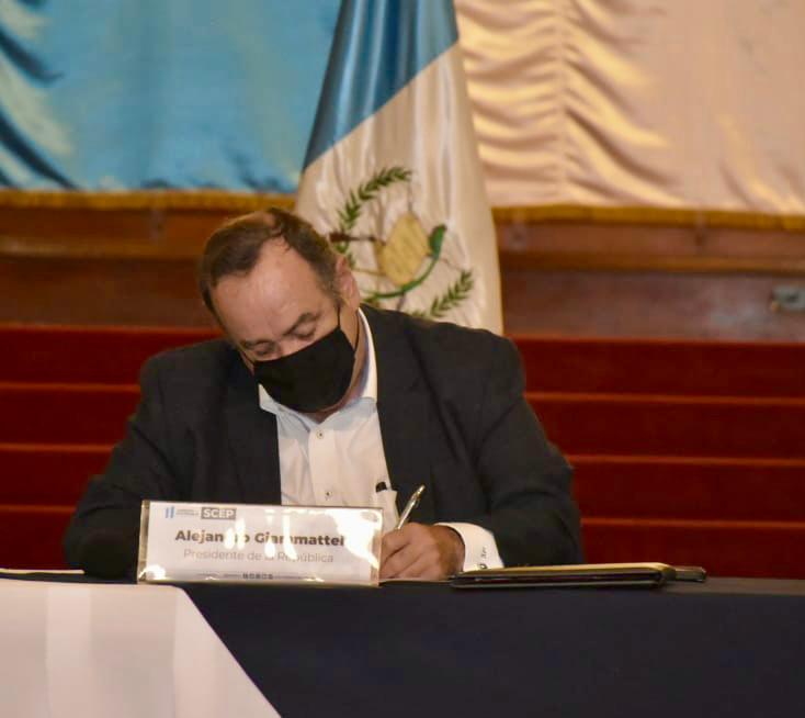 Ciudad de Guatemala, 8 abr ( AGN).- Con el fin de avanzar en la creación y ejecución de los proyectos municipales, el presidente Alejandro Giammattei lideró este jueves la firma de un convenio para la implementación del Sistema Electrónico para la Administración de Procesos de Proyectos de Consejos de Desarrollo (Siprocode).