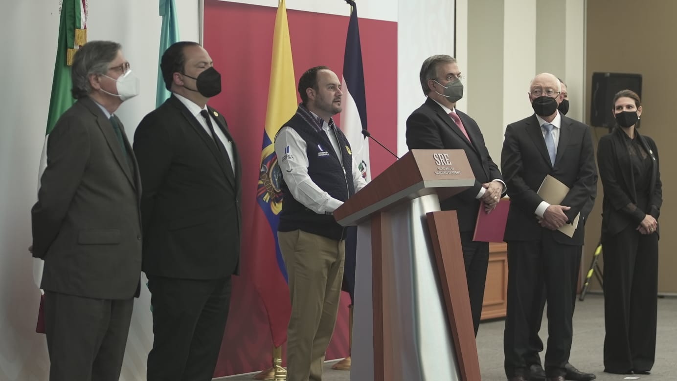 La conferencia en conjunto estuvo a cargo del canciller guatemalteco Pedro Brolo y su homólogo mexicano, Marcelo Ebrard, que se llevó a cabo en la sede de la Secretaría de Relaciones Exteriores en la Ciudad de México.