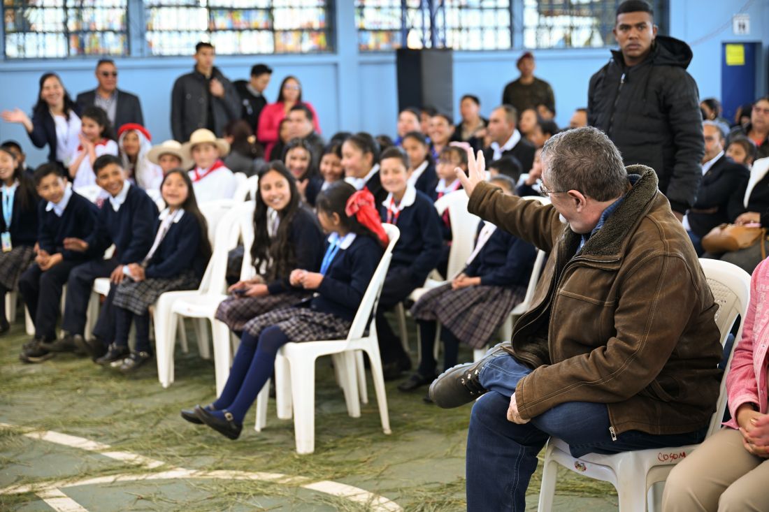 Todos en este país colaboramos para que ustedes puedan venir a las aulas y ser felices, porque en las escuelas, los niños vienen a ser felices y me alegra mucho que este año lectivo lo estemos inaugurando aquí, en esta hermosísima tierra de poetas.