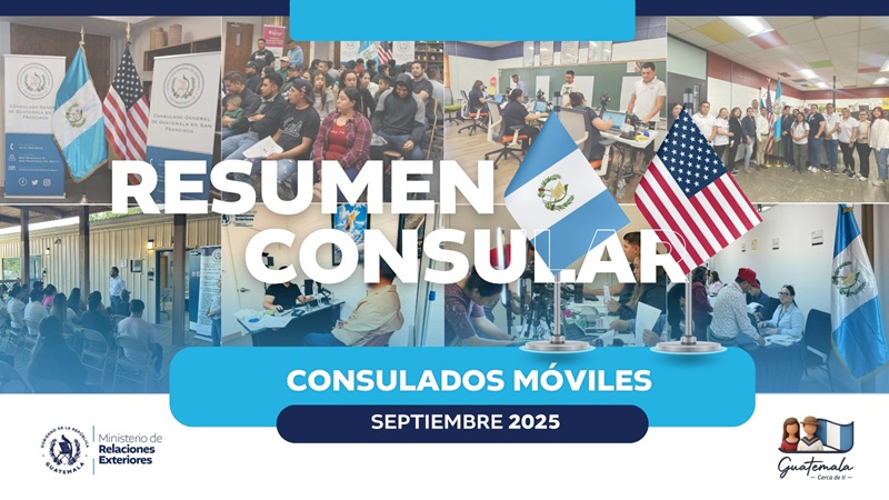 Guatemala, 23 de octubre de 2025. A través de las jornadas de Consulados Móviles, el Ministerio de Relaciones Exteriores (MINEX) brindó 8,251 servicios a los connacionales durante el pasado mes de septiembre, en Estados Unidos.