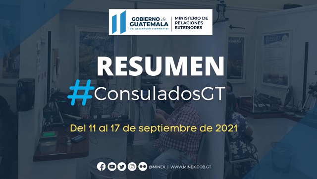 El Ministerio de Relaciones Exteriores de Guatemala comparte el resumen de las actividades realizadas por los distintos Consulados durante la semana del 11 al 17 de septiembre del 2021.