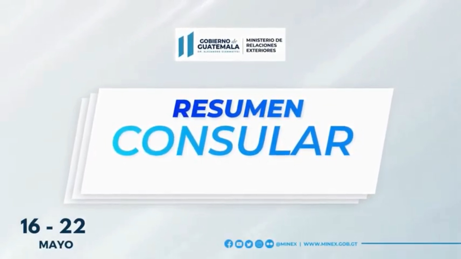 El Ministerio de Relaciones Exteriores de Guatemala comparte el resumen de las actividades realizadas por los distintos Consulados durante la semana del 16 al 22 de mayo del 2022.