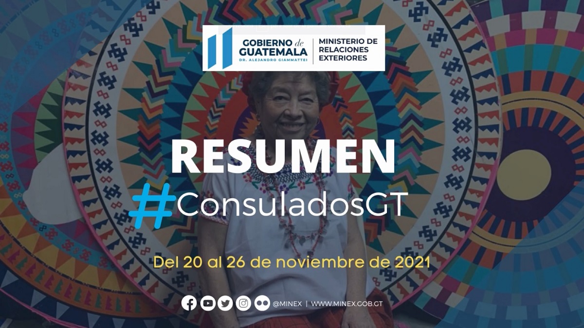 El Ministerio de Relaciones Exteriores de Guatemala comparte el resumen de las actividades realizadas por los distintos Consulados durante la semana del 20 al 26 de noviembre del 2021.