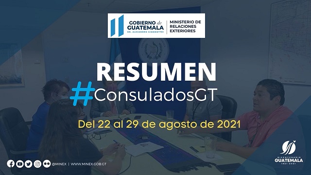 El Ministerio de Relaciones Exteriores de Guatemala comparte el resumen de las actividades realizadas por los distintos Consulados durante la semana del 22 al 29 de agosto del 2021.