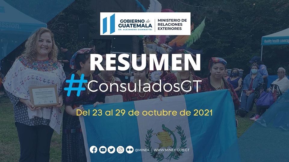 El Ministerio de Relaciones Exteriores de Guatemala comparte el resumen de las actividades realizadas por los distintos Consulados durante la semana del 23 al 29 de octubre del 2021.