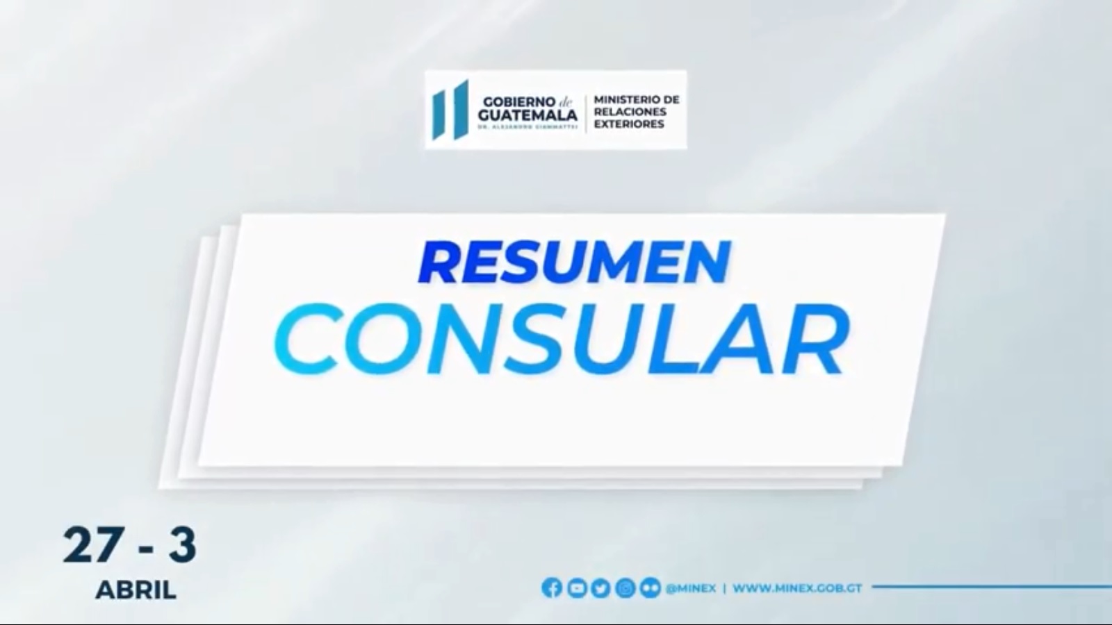 El Ministerio de Relaciones Exteriores de Guatemala comparte el resumen de las actividades realizadas por los distintos Consulados durante la semana del 27 de marzo al 3 de abril del 2022.