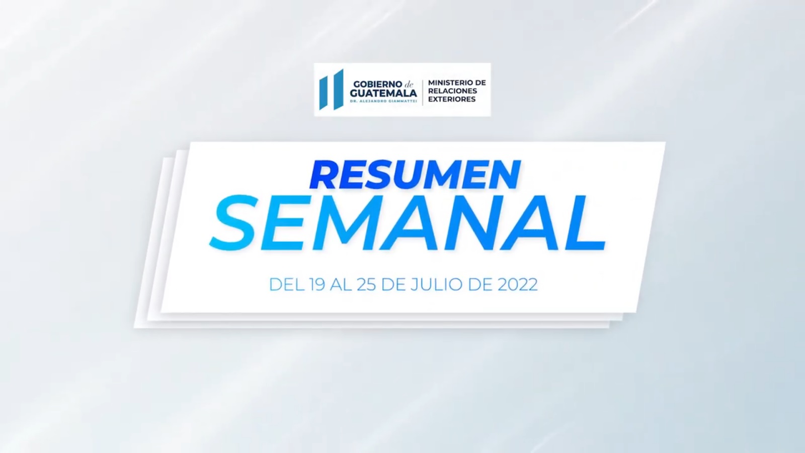 El Ministerio de Relaciones Exteriores de Guatemala comparte el resumen de las actividades realizadas por la Cancillería durante la semana del 19 al 25 de julio, cuyo contenido se puede visualizar en este video.