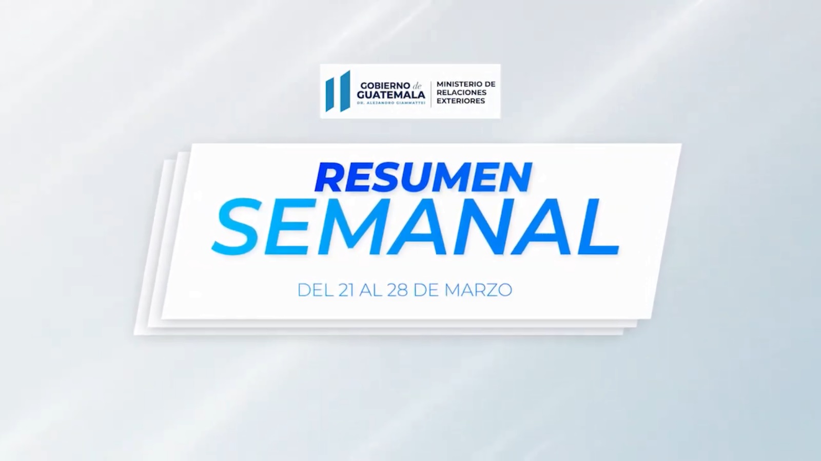 El Ministerio de Relaciones Exteriores de Guatemala comparte el resumen de las actividades realizadas por la Cancillería durante la semana del 21 al 28 de marzo del 2022, cuyo contenido se puede visualizar en este video.