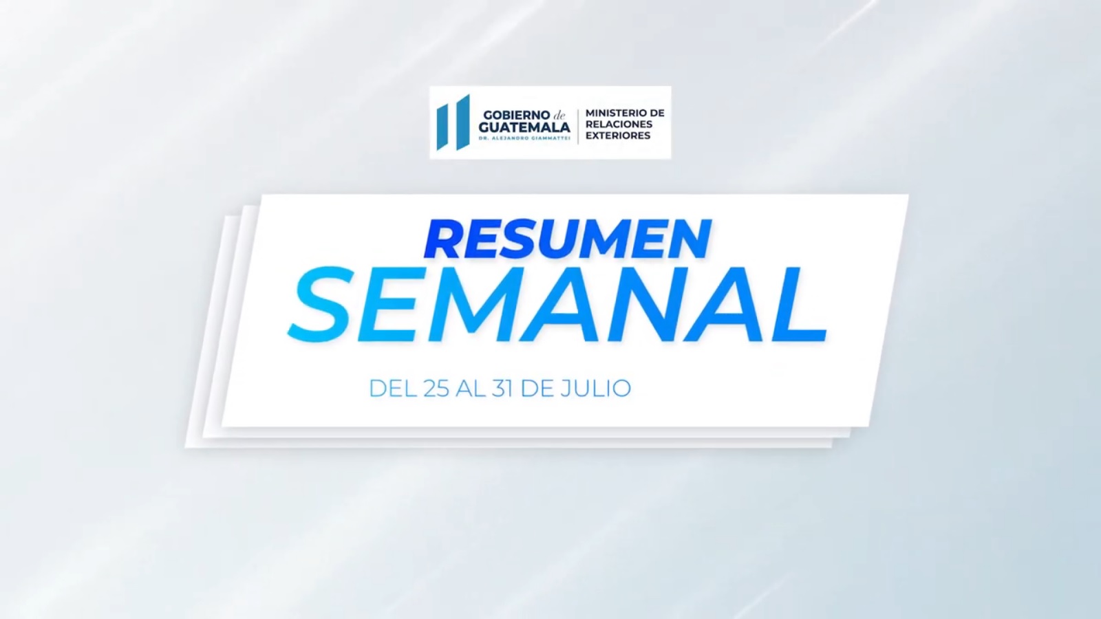 El Ministerio de Relaciones Exteriores de Guatemala comparte el resumen de las actividades realizadas por la Cancillería durante la semana del 25 al 31 de julio, cuyo contenido se puede visualizar en este video.