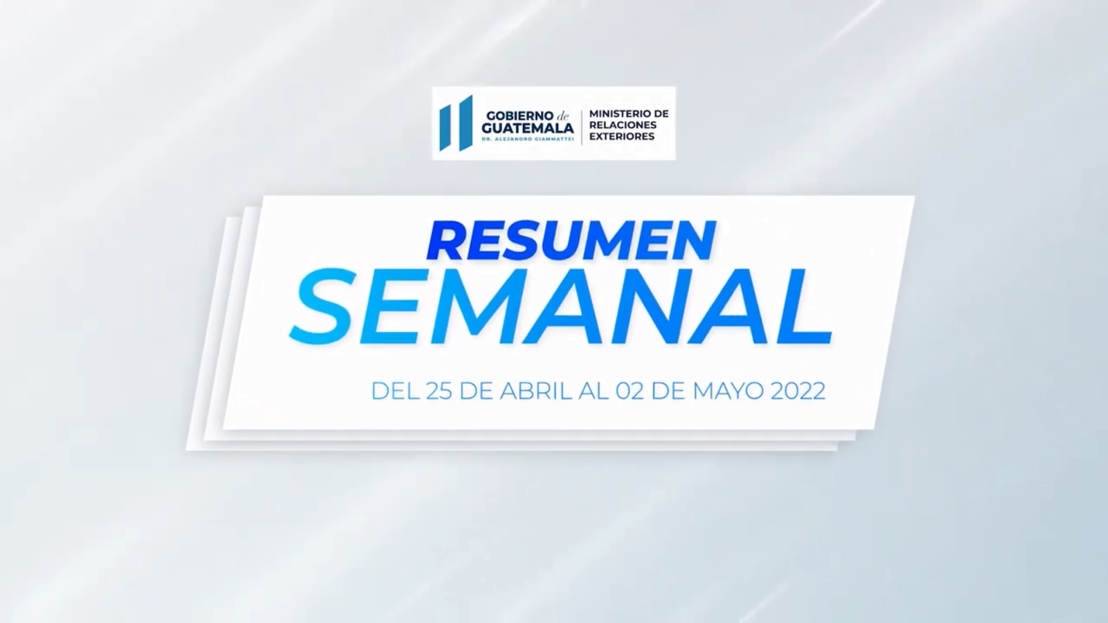 El Ministerio de Relaciones Exteriores de Guatemala comparte el resumen de las actividades realizadas por la Cancillería durante la semana del 25 de abril al 2 de mayo, cuyo contenido se puede visualizar en este video.