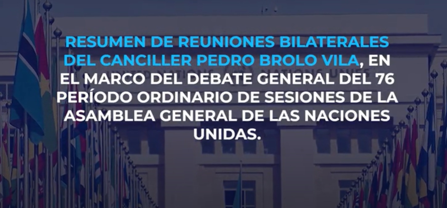 El Ministerio de Relaciones Exteriores de Guatemala comparte un resumen, en video, de las reuniones bilaterales que el canciller Pedro Brolo Vila sostuvo en el marco de la 76ª Asamblea General de las Naciones Unidas.