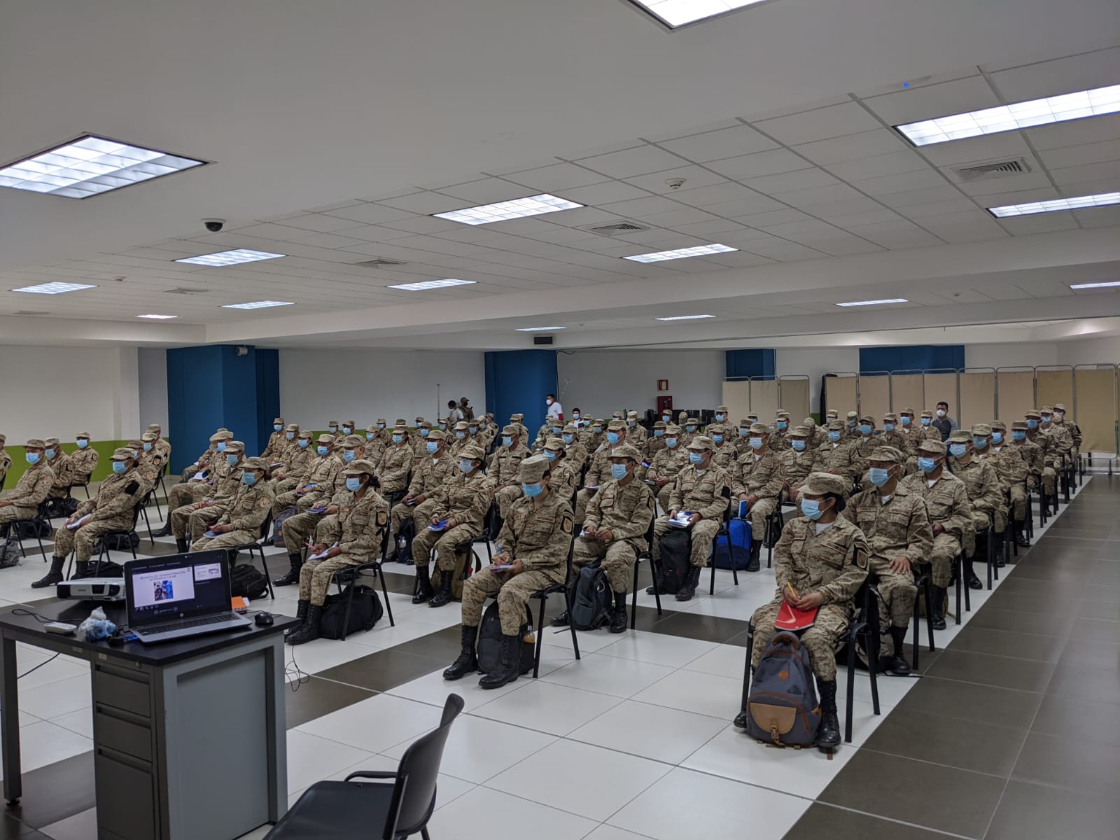 105 integrantes de las Reservas Militares de Quetzaltenango, recibieron una capacitación sobre hipodermia dirigida por el Instituto Guatemalteco de Seguridad Social y el Servicio de Sanidad Militar del Ejército de Guatemala, con la finalidad de integrarlos de inmediato al personal que administra la vacuna contra el Coronavirus, COVID-19 en el occidente del país.