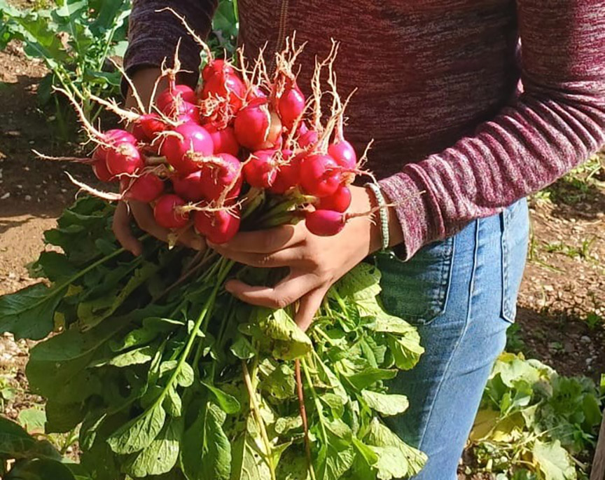 En Baja Verapaz, alumnos y docentes de las Escuelas Oficiales Rural Mixta (EORM), de La Rinconada, en San Jerónimo; de la aldea Ixcayán, Salamá; de la aldea Sangre de Cristo, Cubulco; de la aldea Nance Dulce, Granados; de la aldea Agua Caliente, Santa Cruz El Chol, y la ubicada frente a la pista de Aviación de Rabinal, recogieron su primera cosecha de rábanos. Además, los estudiantes también aprenden acerca de las propiedades medicinales de las plantas y practican la agricultura vertical utilizando materiales reciclados.