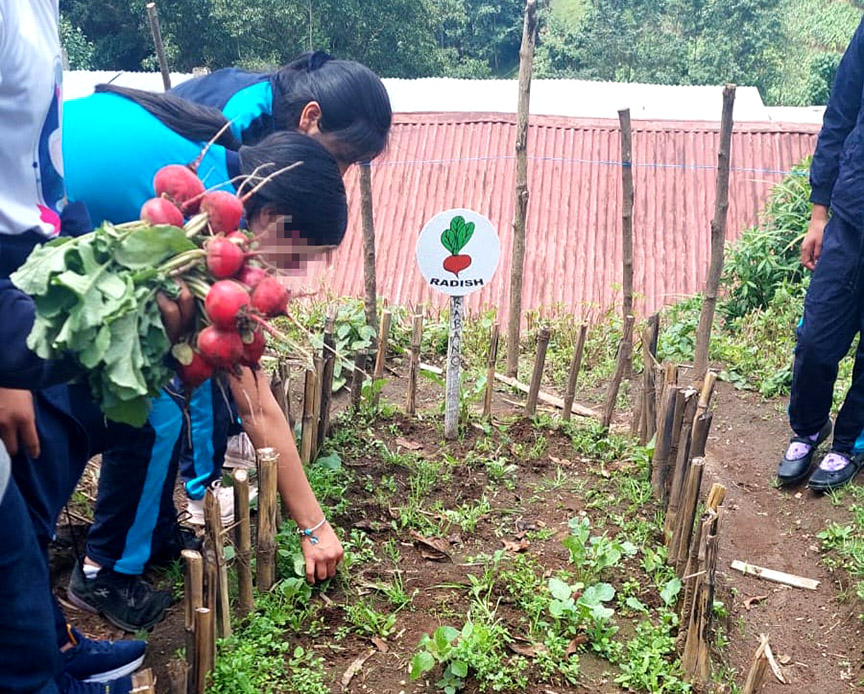 Los huertos escolares están produciendo y brindando sus frutos, con cosechas cada vez más abundantes. Estudiantes de todo el país están recolectando una variedad de hortalizas como acelgas, rábanos, chipilín, hierba mora y bledo.
