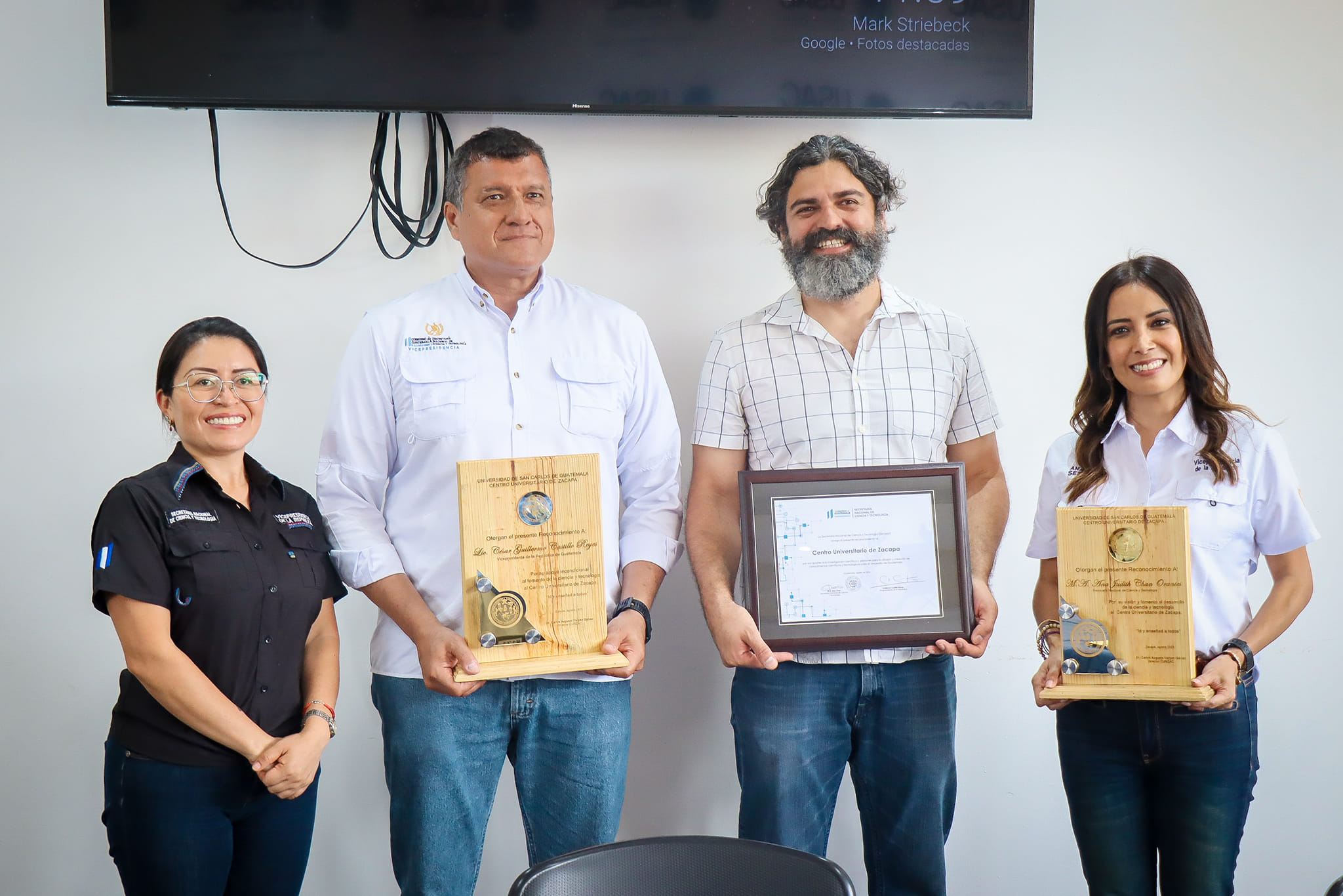 El equipo de la Senacyt entregó un reconocimiento a las autoridades del Cunzac por sus aportes a la investigación científica y gestiones para la difusión y creación de conocimientos científicos y tecnológicos para el desarrollo de Guatemala.