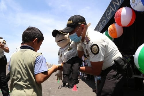 En esta línea, las fuerzas de seguridad e instituciones gubernamentales instalan kioscos informativos en las ferias de prevención, donde los niños, jóvenes y adultos participan de actividades lúdicas, deportivas y recreativas. Además, las personas pueden tomarse fotografías con las marionetas Lesh y Leshy, la patrulla Corvette Stingray, y las botargas Polita y Polito.