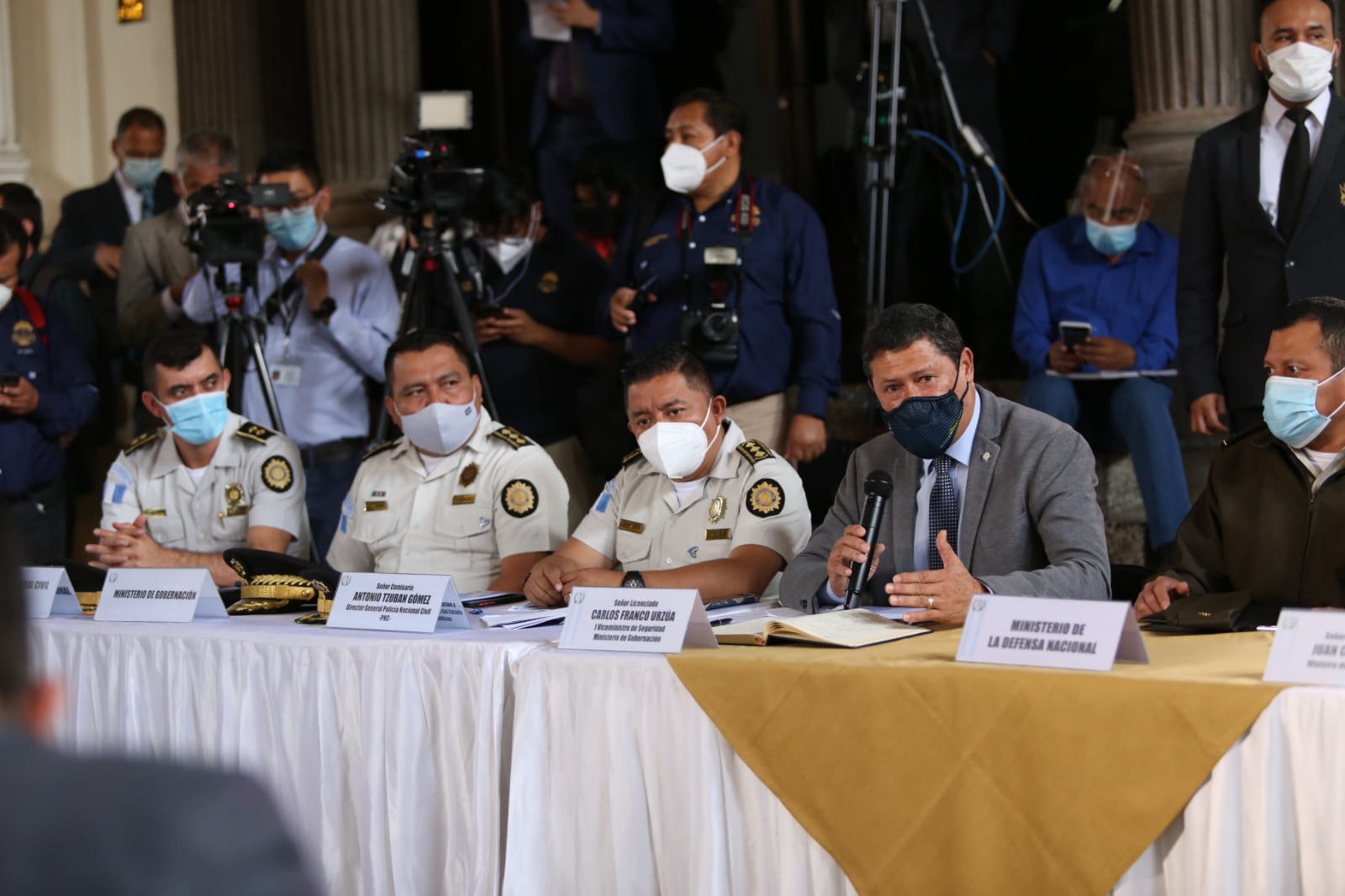En una reunión desarrollada en Pasos Perdidos del Congreso de la República, el Viceministro de Seguridad, Carlos Franco, dio a conocer que las fuerzas de seguridad de Policía Nacional Civil han estado brindando un apoyo incondicional a las instituciones que tienen el trabajo de traslado de vacunas, seguridad ciudadana y perimetral entre otras.