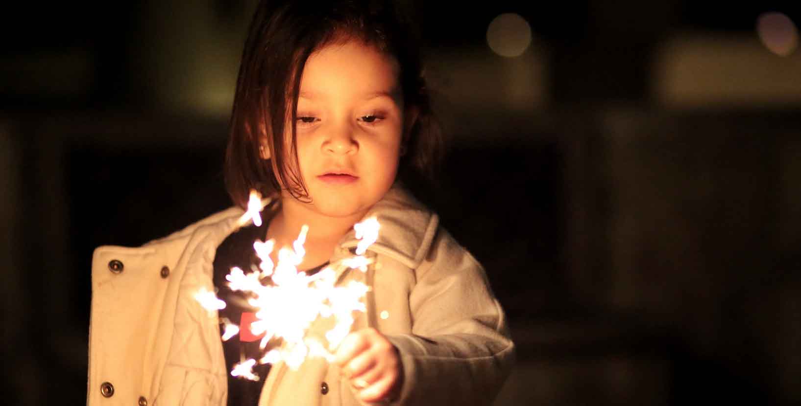 Acompañe a los pequeños mientras queman juegos pirotécnicos para evitar problemas oculares