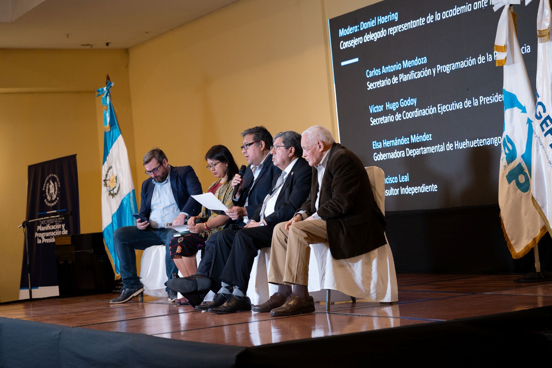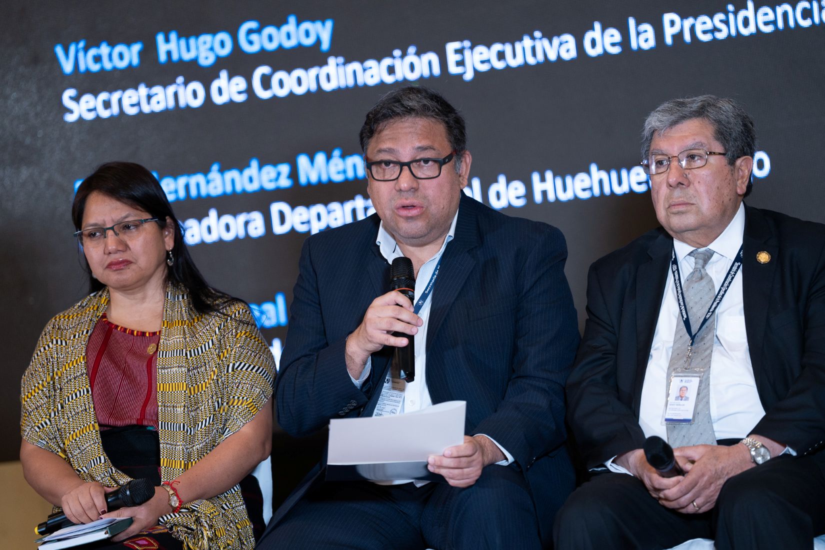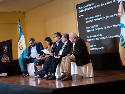 Como parte de este taller se desarrolló el conversatorio “Consecuencias de la corrupción a nivel territorial”, en el que participó como expositor el secretario de Planificación y Programación de la Presidencia, Carlos Mendoza. Le acompañaron Víctor Hugo Godoy, secretario de Coordinación Ejecutiva de la Presidencia; Elsa Hernández Méndez, gobernadora departamental de Huehuetenango, y Francisco Leal, consultor independiente.