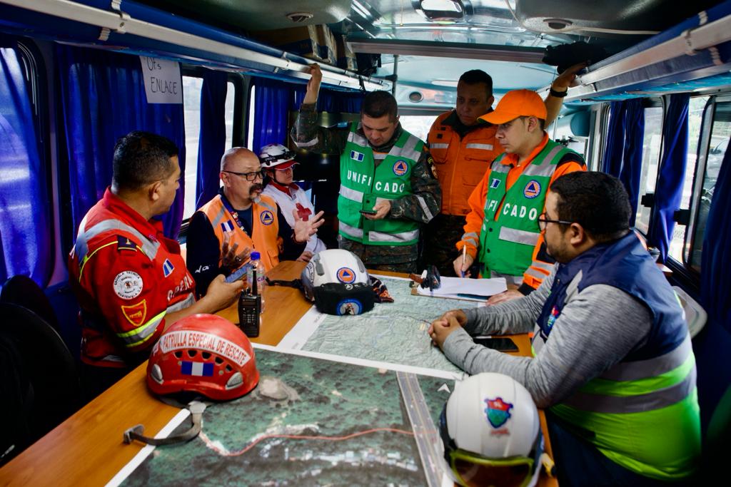 Dada la magnitud de la emergencia se informa que la SE-CONRED continuará apoyando con la presencia del Equipo de Respuesta Inmediata, Delegado de Región 1, quienes coordinan desde el Puesto de Comando, las acciones que realizan 16 equipos de búsqueda integrados por el Cuerpo de Bomberos Voluntarios; Batallón Humanitario de Rescate del Ejército de Guatemala; Cuerpo de Bomberos Municipales de la ciudad de Guatemala y de los municipios de Chinautla y Mixco; Cruz Roja Guatemalteca; Policía Nacional Civil; K-SAR Guatemala y Socorro Alpino Guatemala.