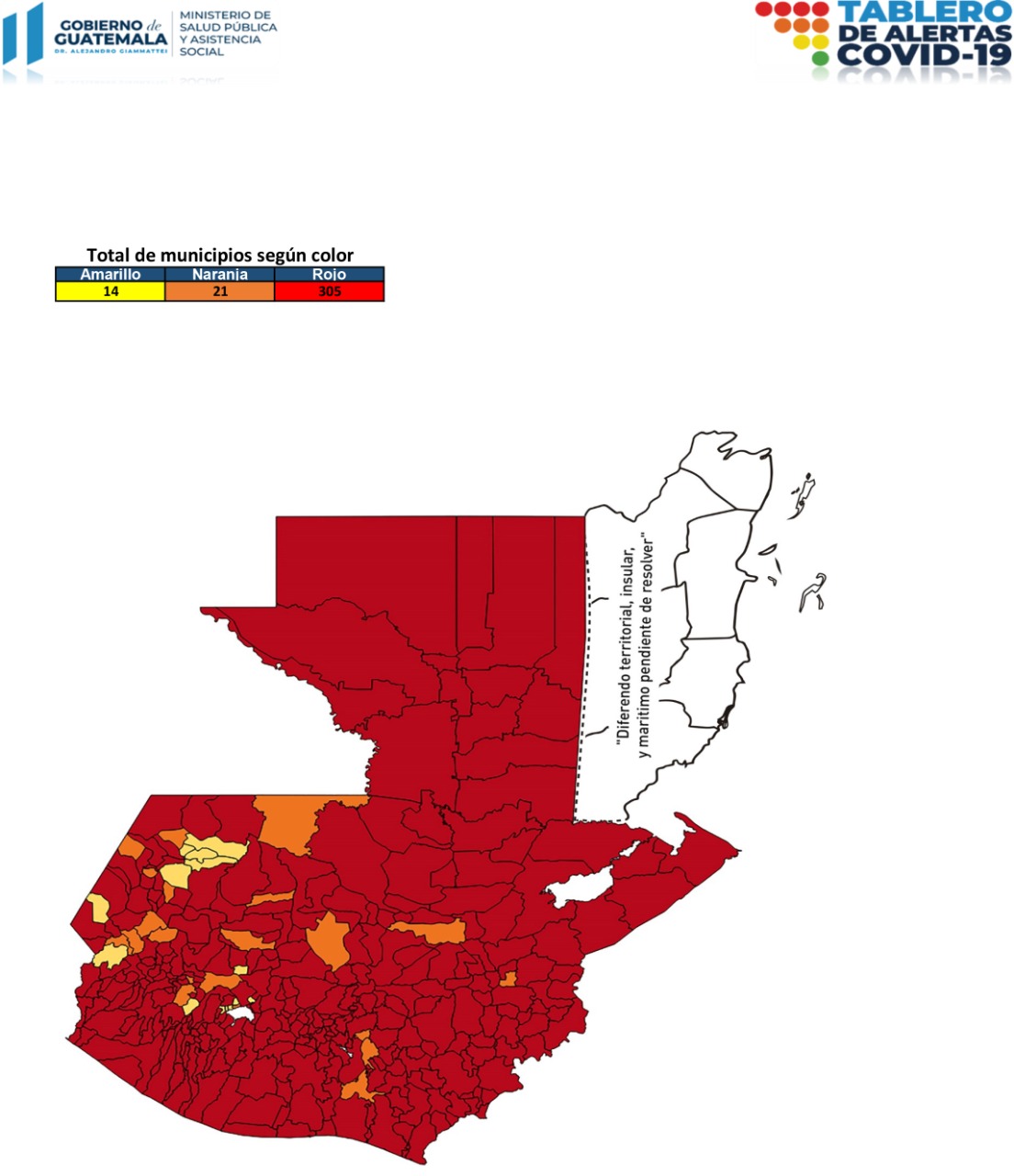 Este sábado 04 de septiembre, el Ministerio de Salud Pública y Asistencia Social -MSPAS- actualizó el Tablero de Alertas Sanitarias COVID-19; para los próximos 14 días se establece 305 municipios en alerta roja, 21 en naranja y 14 en amarilla