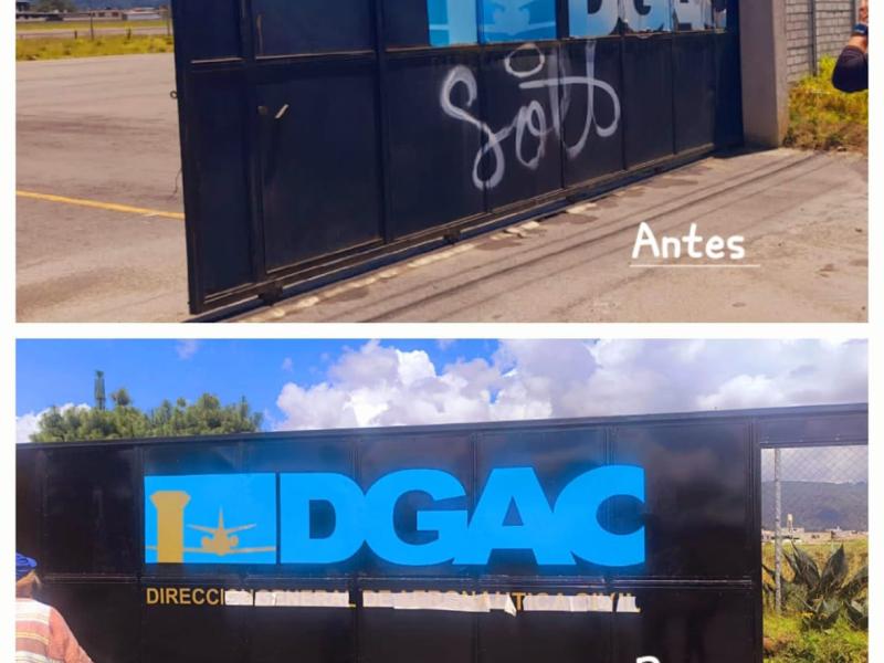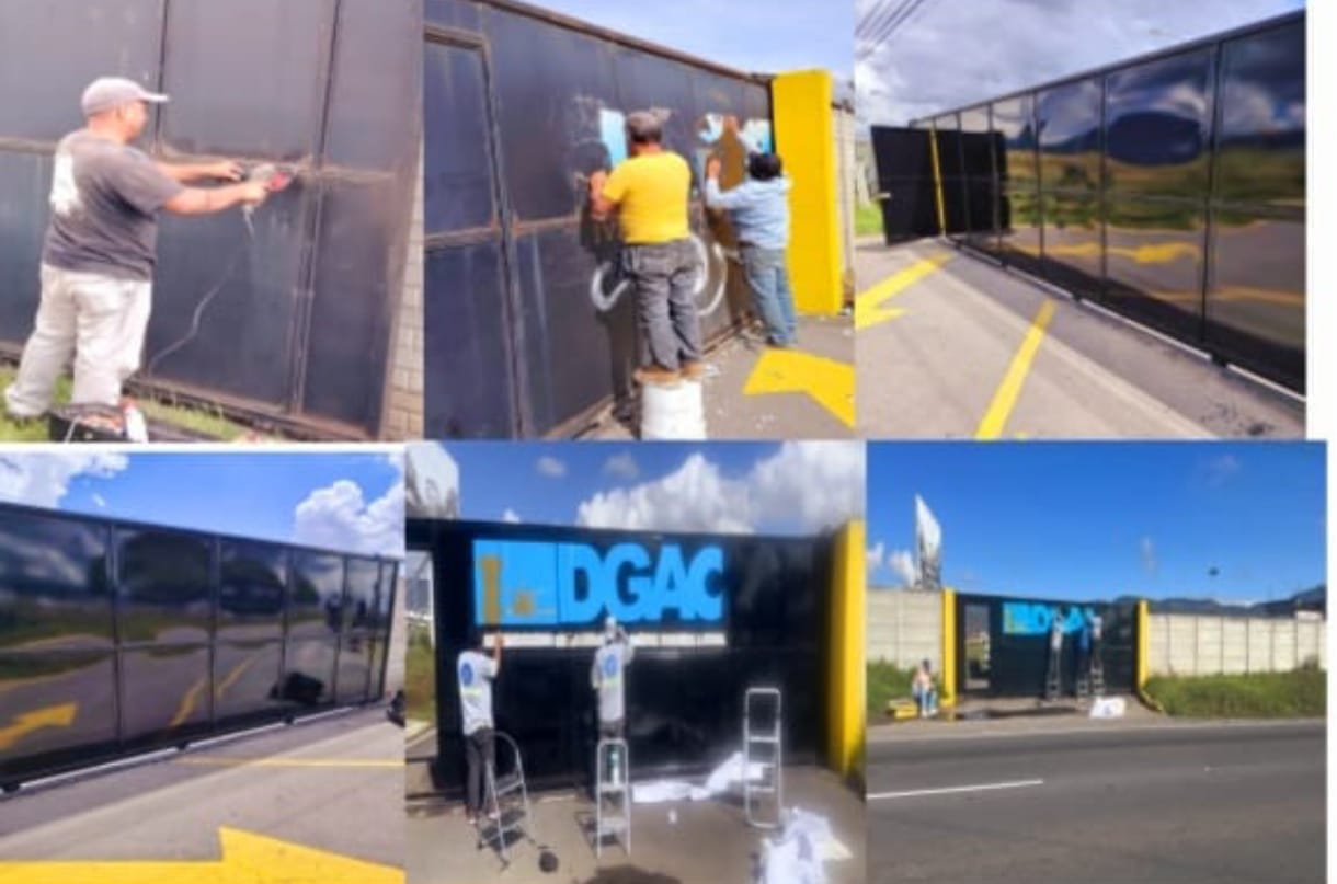 La administración del Aeródromo de Quetzaltenango continúa fortaleciendo sus acciones orientadas al mantenimiento y mejoramiento de la infraestructura aeroportuaria. En esta ocasión, se trabaja específicamente en el remozamiento de los dos portones principales de ingreso y egreso, con el objetivo de garantizar un funcionamiento óptimo, mayor seguridad y una mejor presentación estética del recinto.