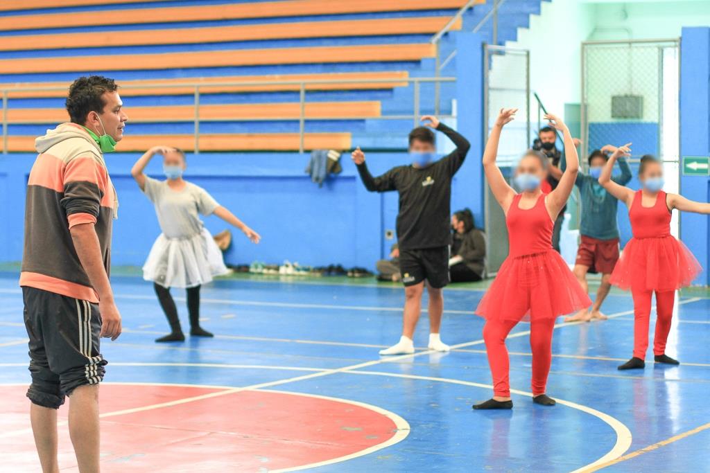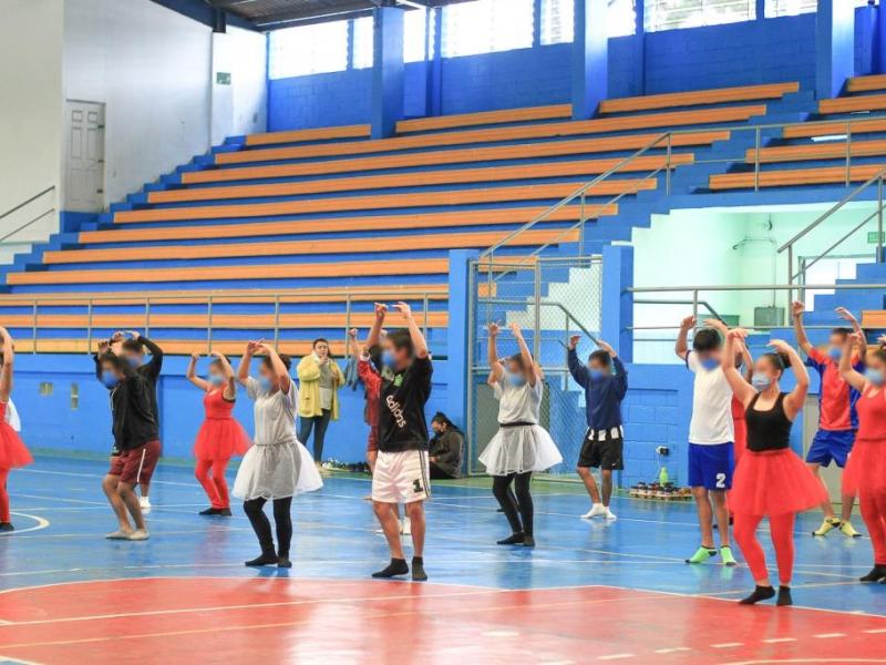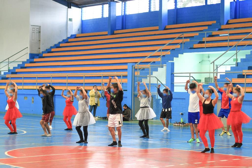 Junto con otros 35 adolescentes hombres y mujeres, Ailyn asistió a la práctica de ballet realizada en la cancha polideportiva de la Dirección General de Educación Física, que incluyó la metodología de Comunidad Terapéutica, que permite, por medio de valores, que ellos comprendan su diario vivir y lo fortalezcan con normas como la disciplina.