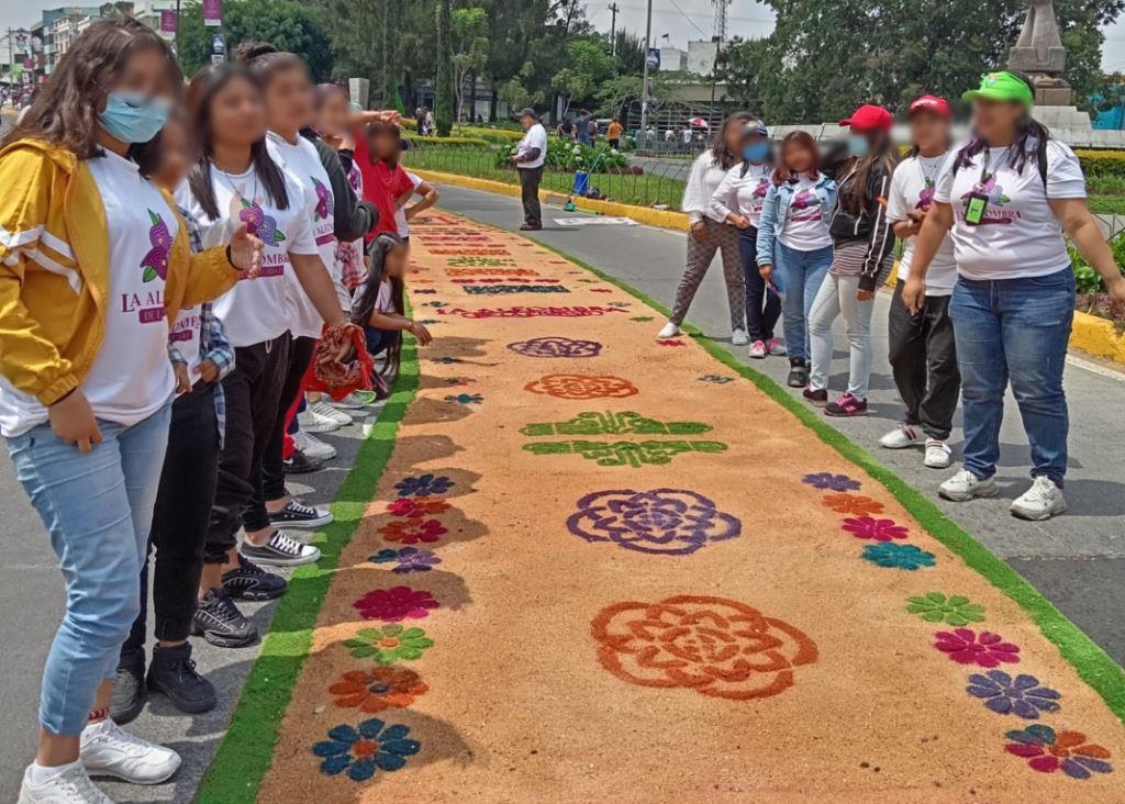 Adolescentes bajo resguardo participan en elaboración de alfombra: “¡Hoy sí, hoy sí toqué el aserrín!”