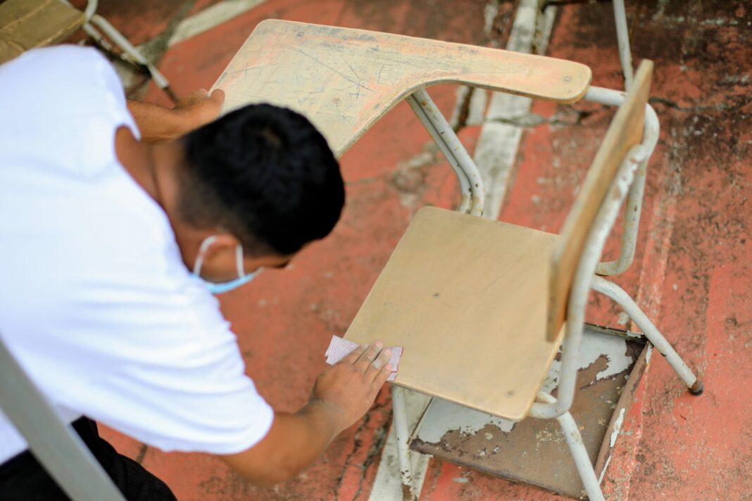 Carlos Menchú, Subsecretario de Reinserción de la SBS, destacó con entusiasmo el valor de esta iniciativa: “Con la Dirección de Prevención Terciaria, tenemos jóvenes que están por finalizar su sanción, donando de su tiempo y de sus capacidades para poder rehabilitar escritorios y tenerlos al 100%. Estos escritorios pertenecen a la Secretaría de Bienestar Social, pero por el paso de los meses y años se han deteriorado”, detalló.