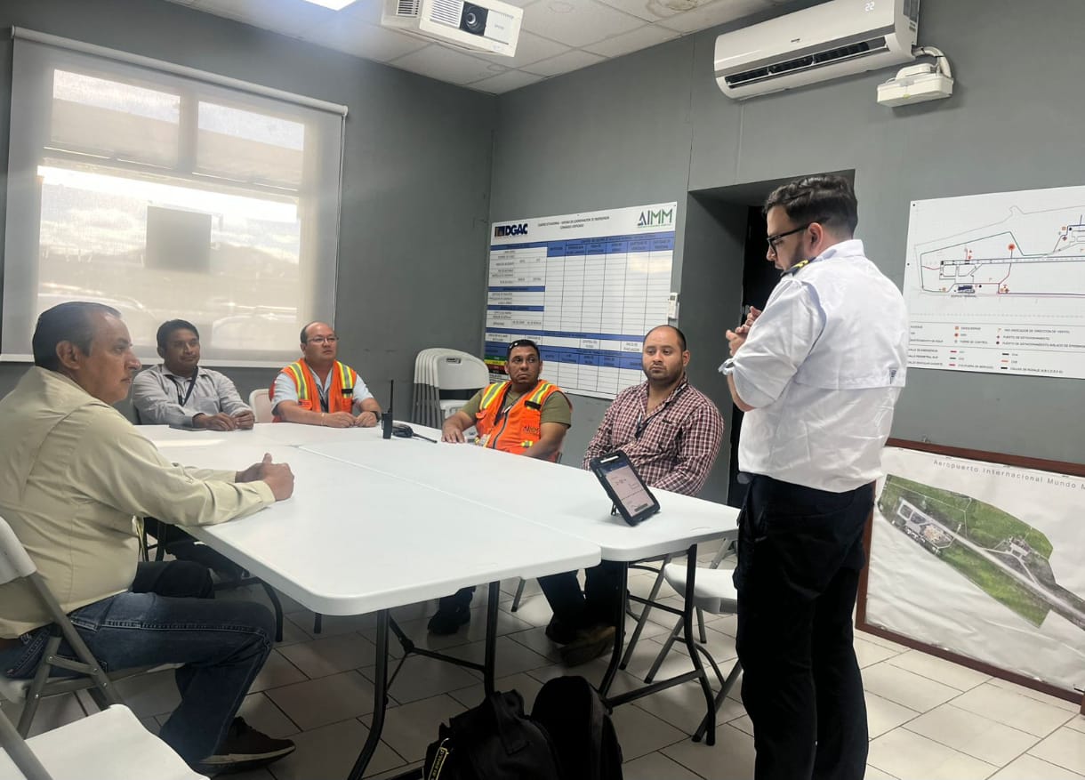 Se llevó a cabo en las instalaciones del Aeropuerto Internacional Mundo Maya (AIMM) una reunión de briefing con el objetivo de coordinar las acciones previas al próximo vuelo de inspección y certificación de las luces PAPIS ubicadas en las cabeceras 11-29.