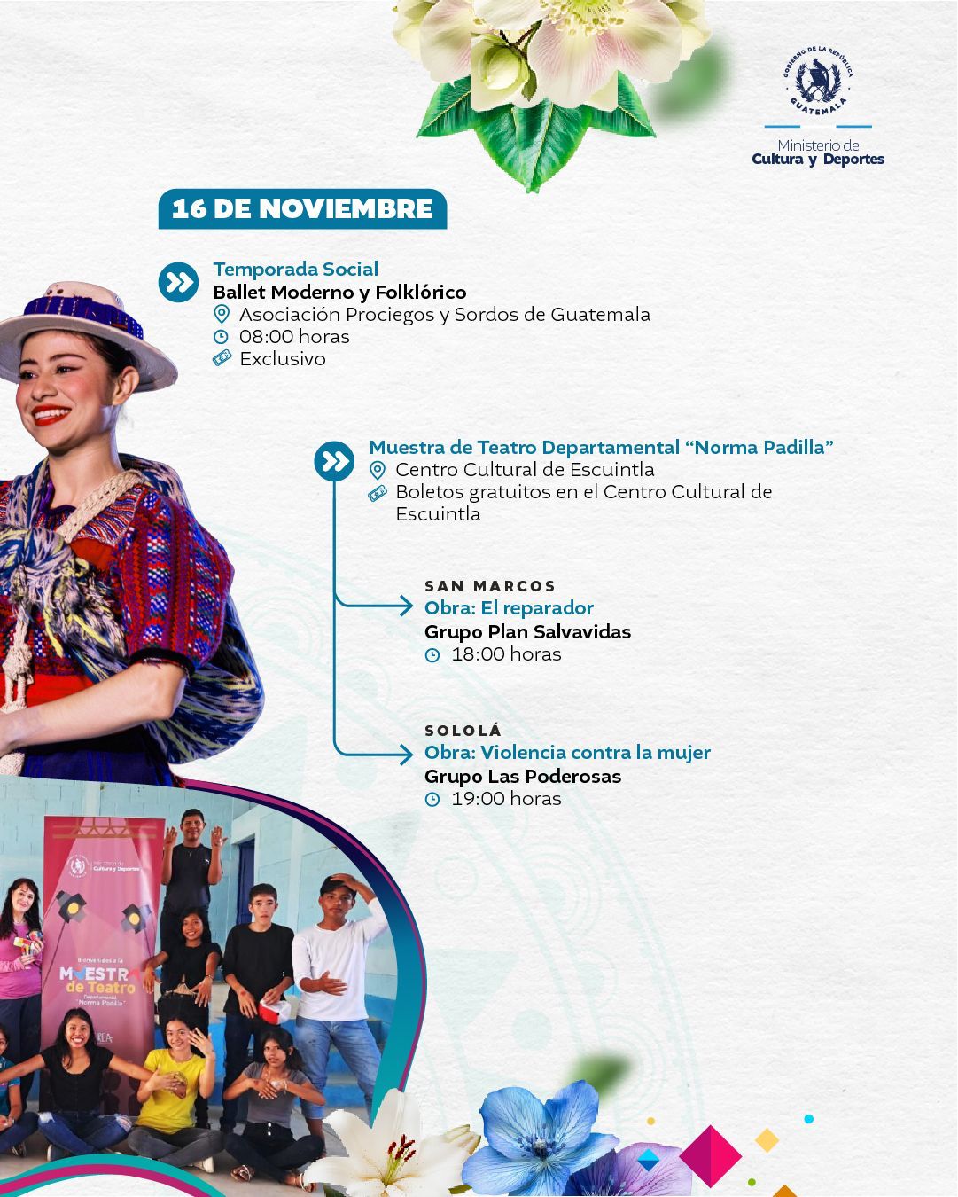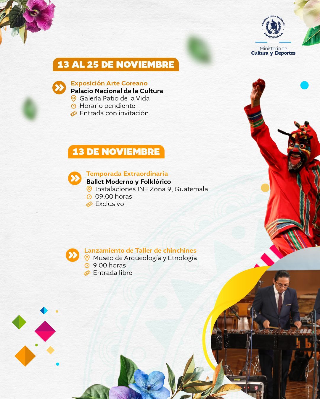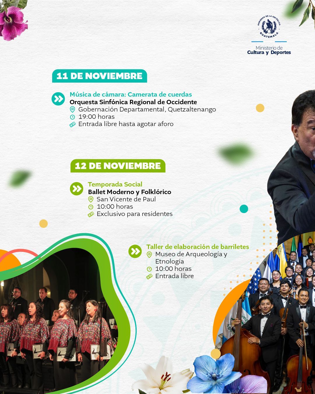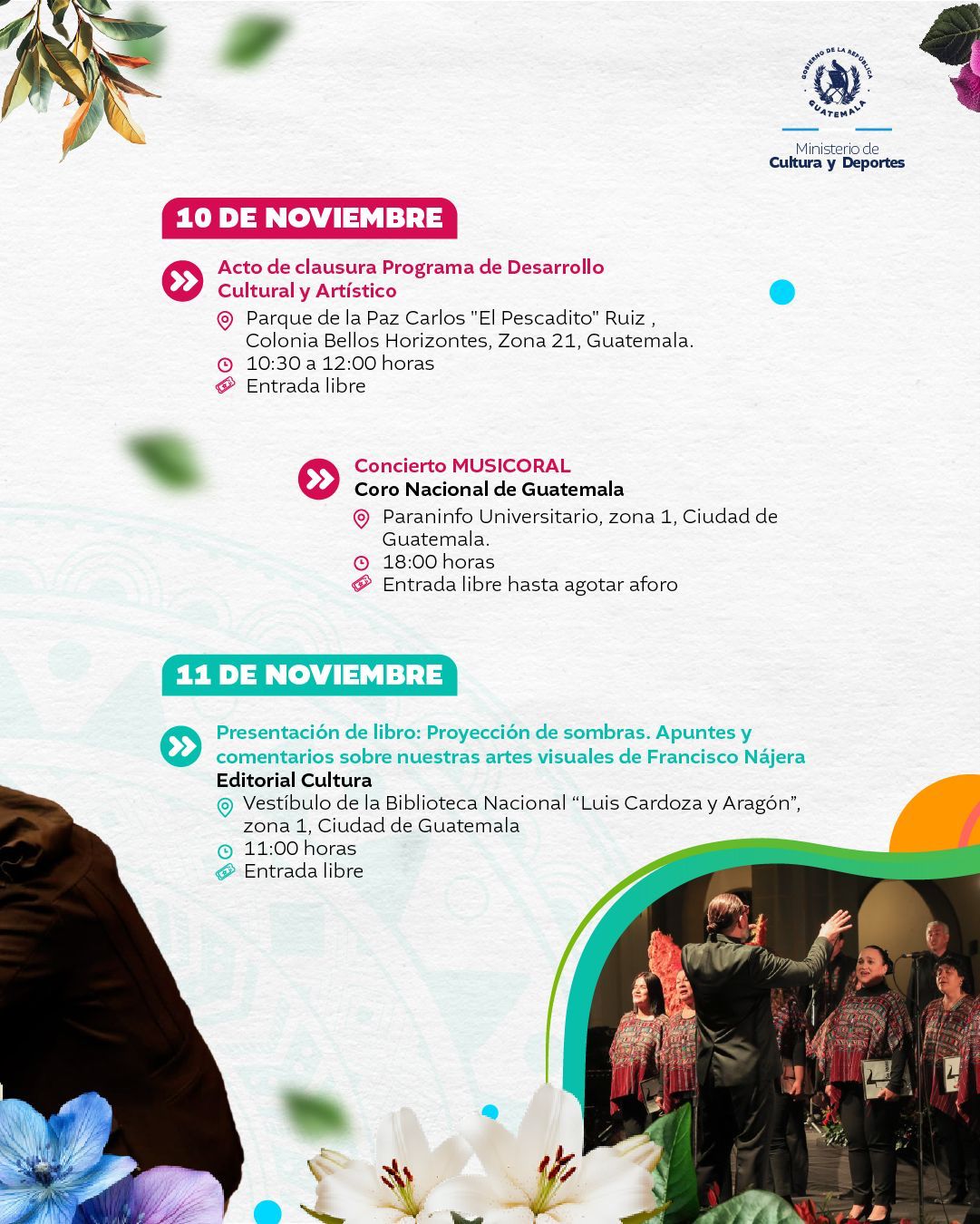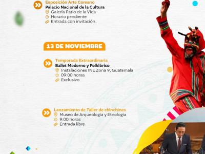 El Ministerio de Cultura y Deportes te presenta la agenda cultural preparada del 10 al 16 de noviembre de 2025 en distintos espacios a cargo de esta institución en el país.