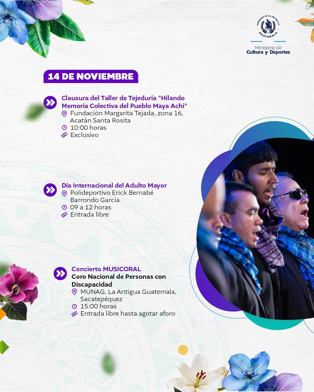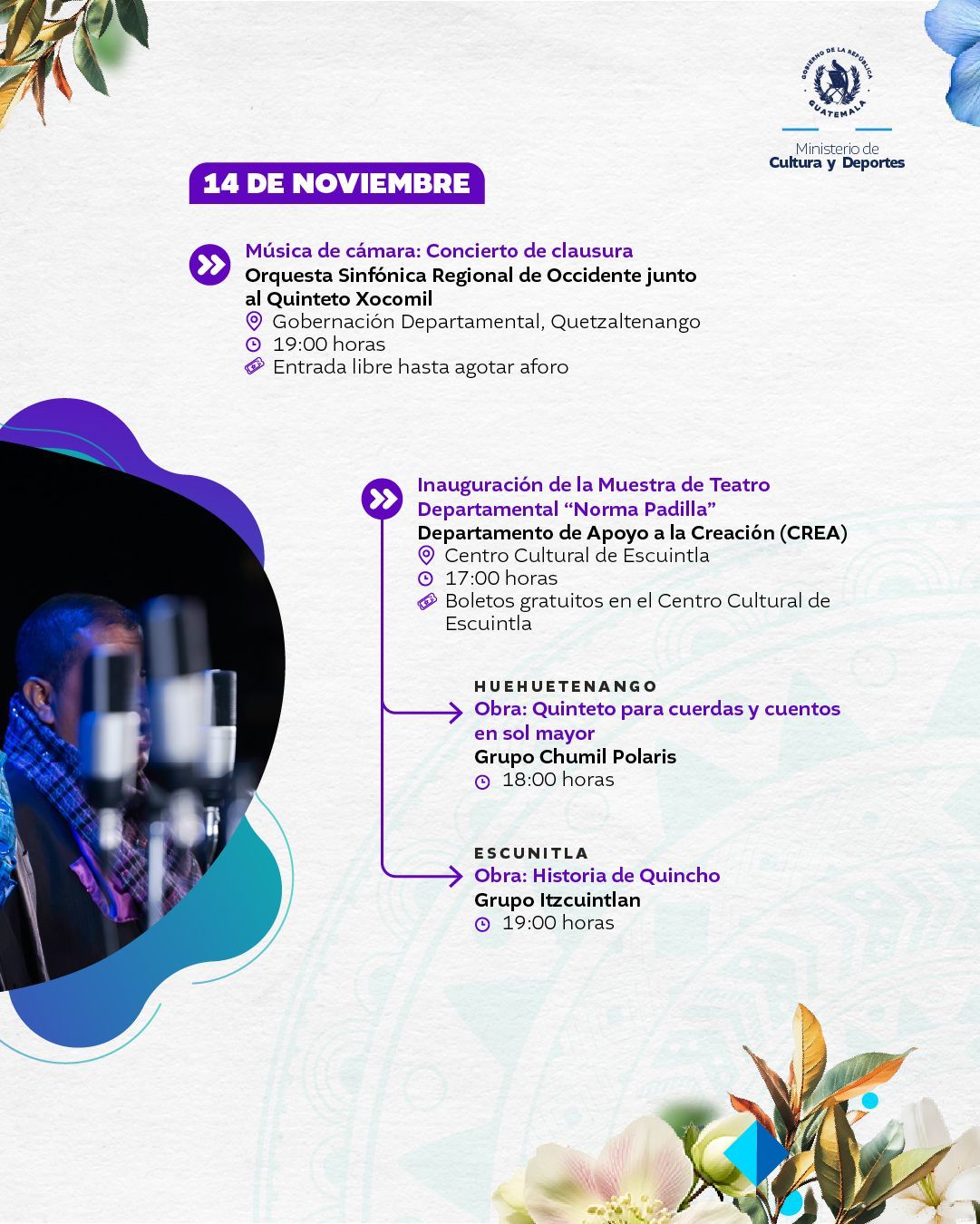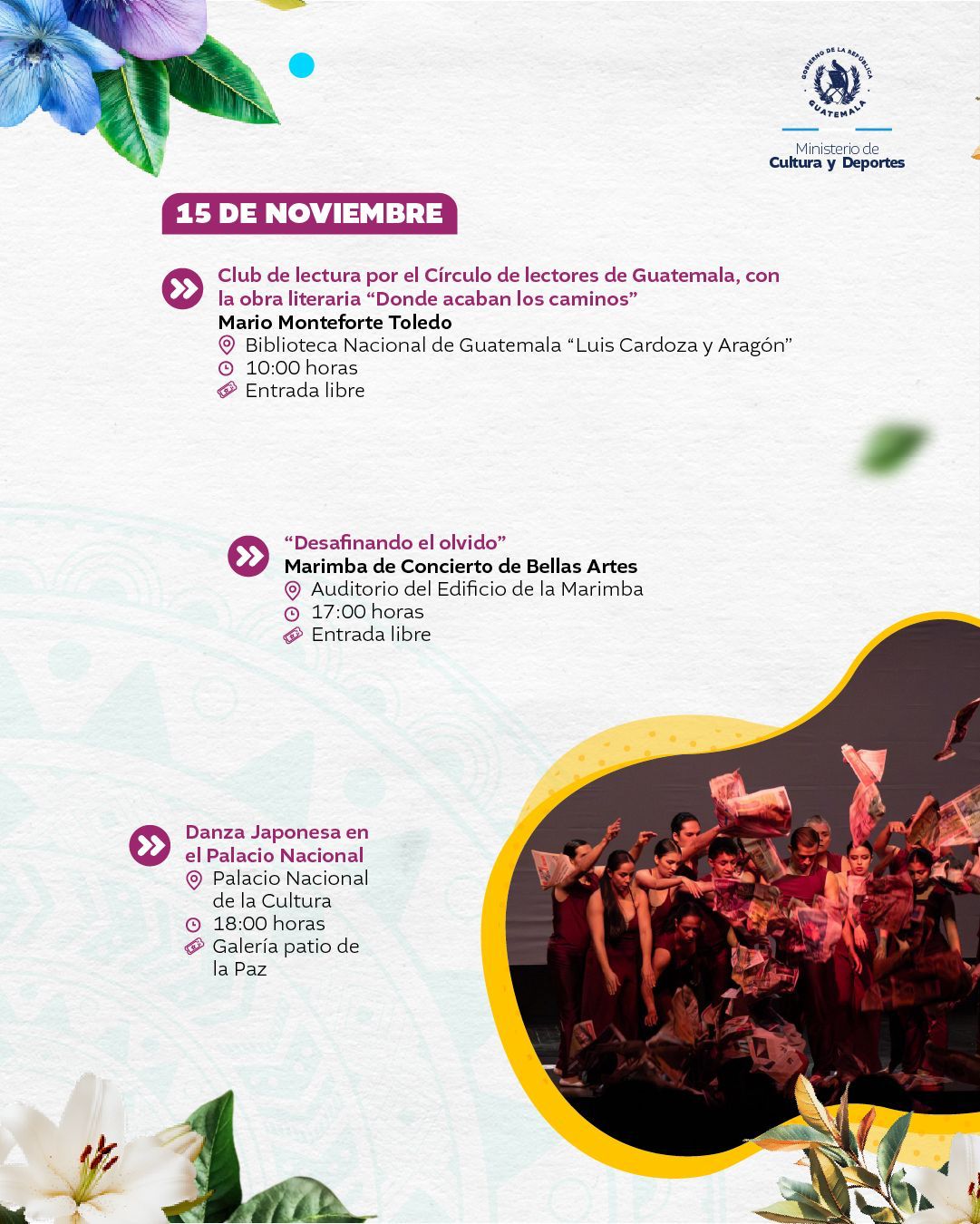El Ministerio de Cultura y Deportes te presenta la agenda cultural preparada del 10 al 16 de noviembre de 2025 en distintos espacios a cargo de esta institución en el país.