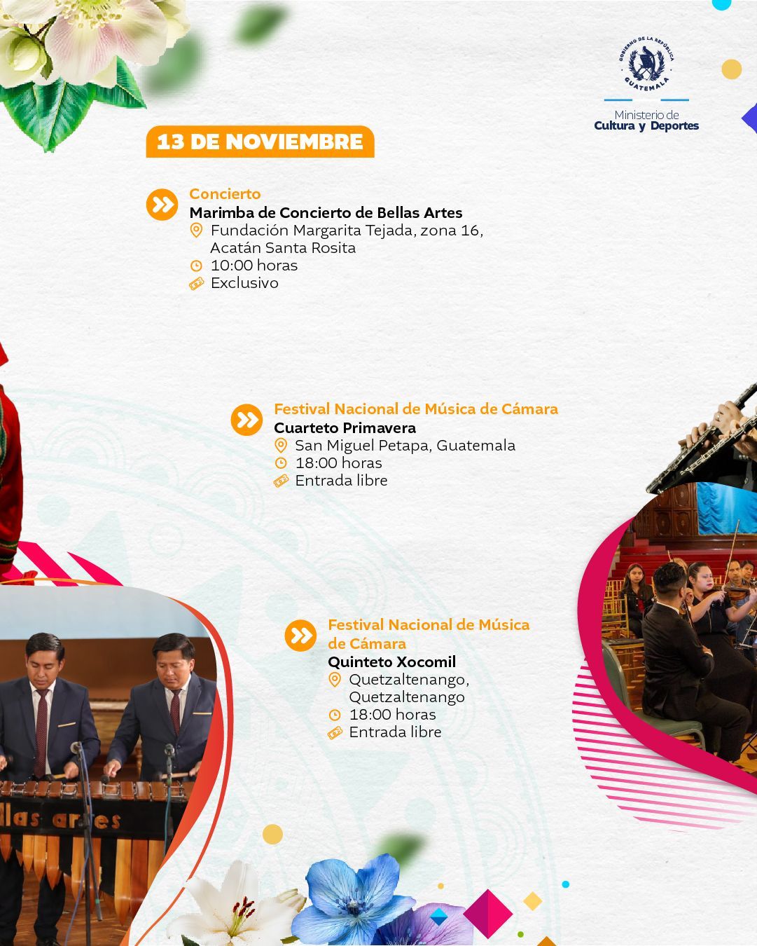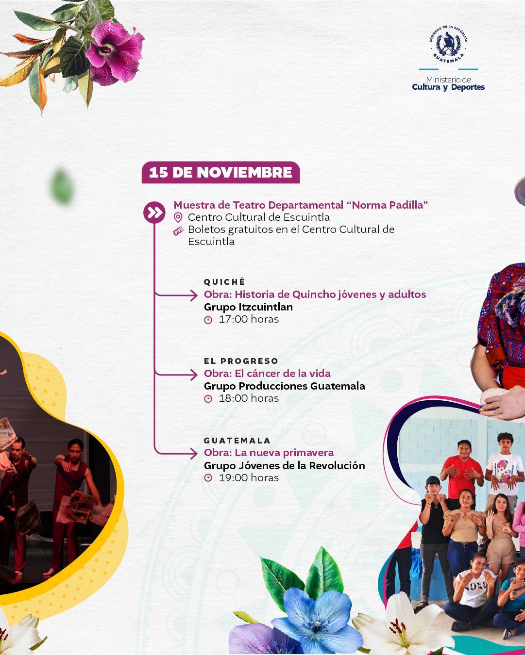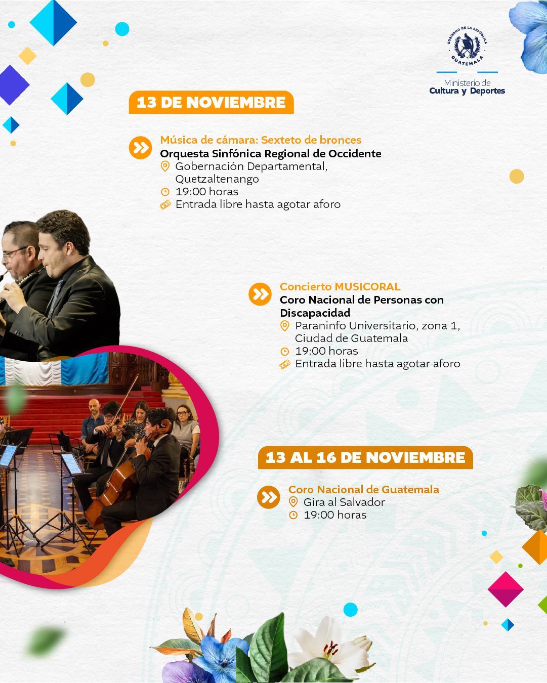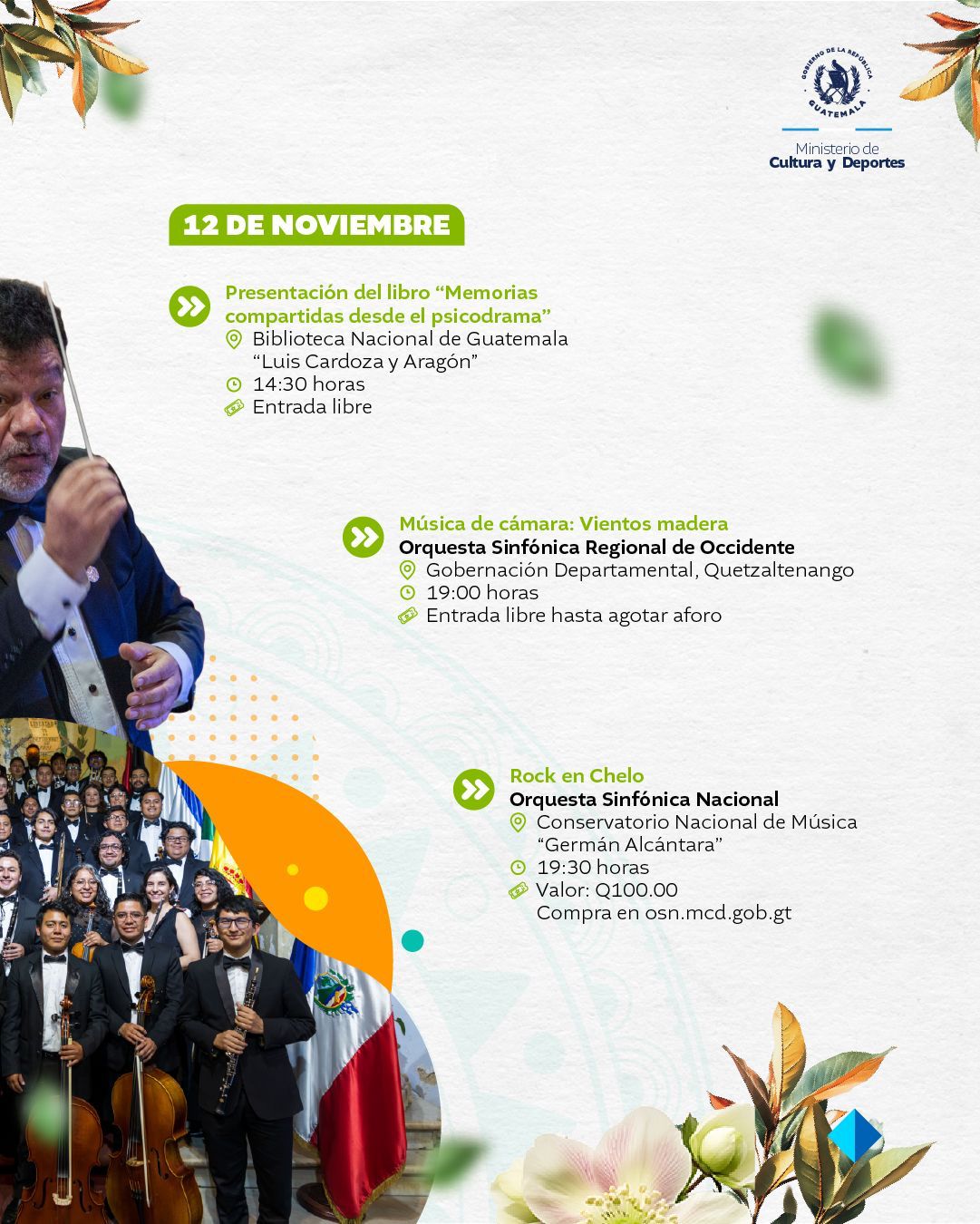 El Ministerio de Cultura y Deportes te presenta la agenda cultural preparada del 10 al 16 de noviembre de 2025 en distintos espacios a cargo de esta institución en el país.