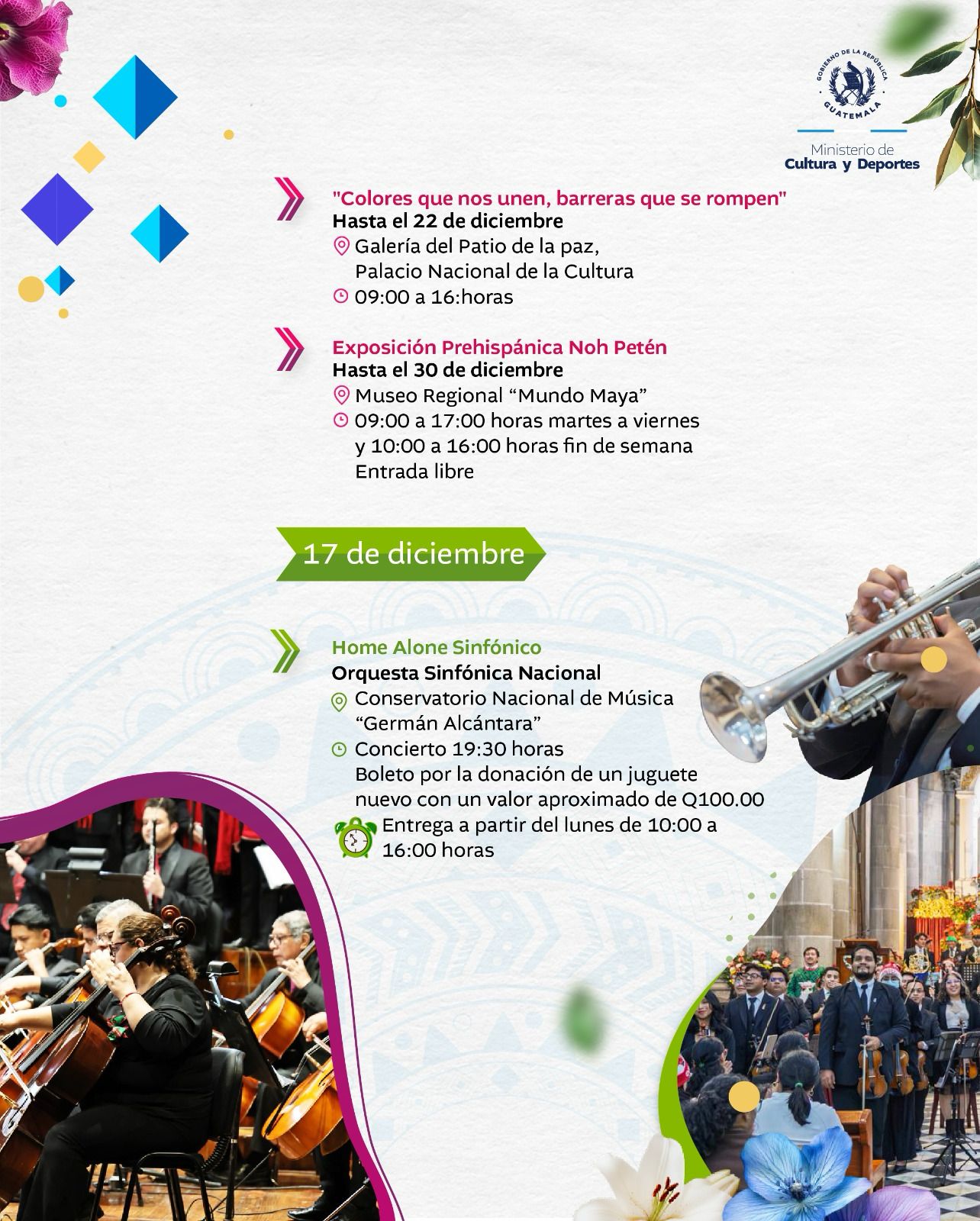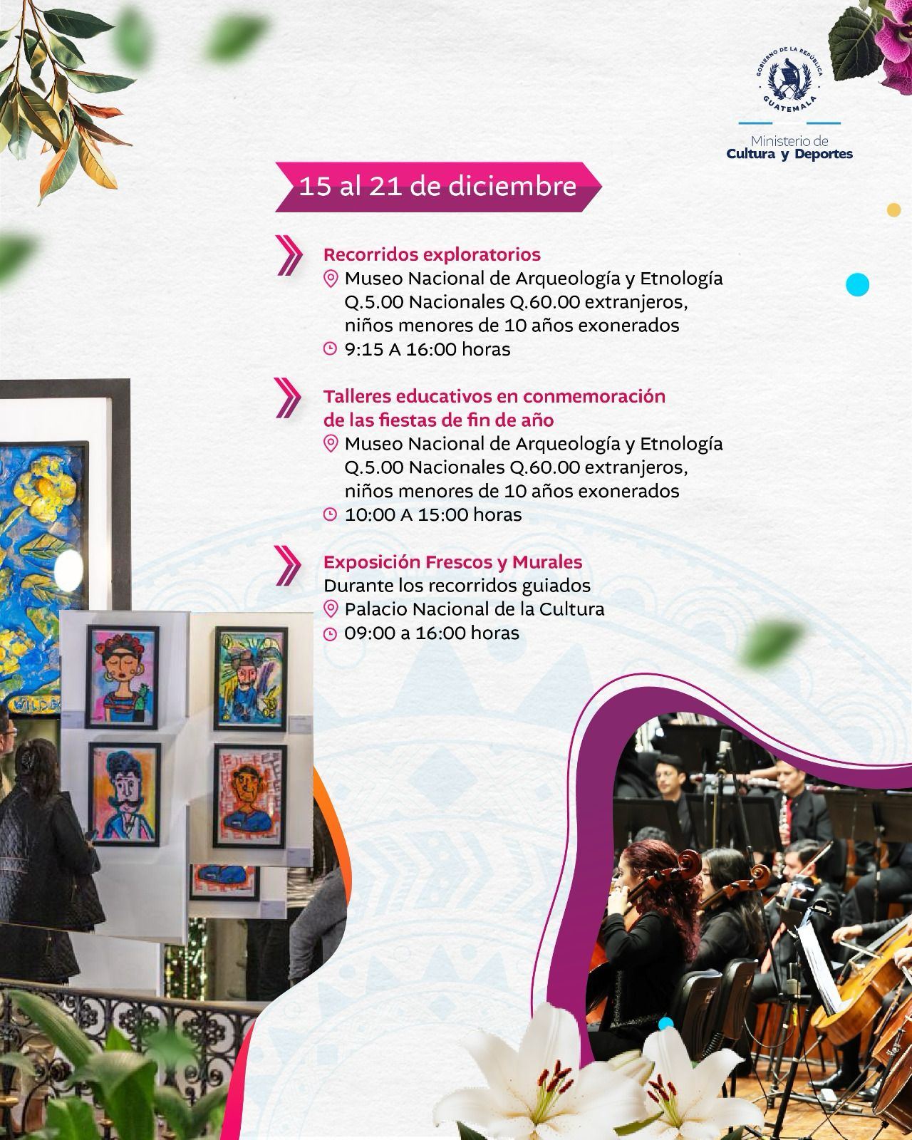 El Ministerio de Cultura y Deportes (MCD) te invita a conocer la agenda cultural del 15 al 21 de diciembre de 2025.