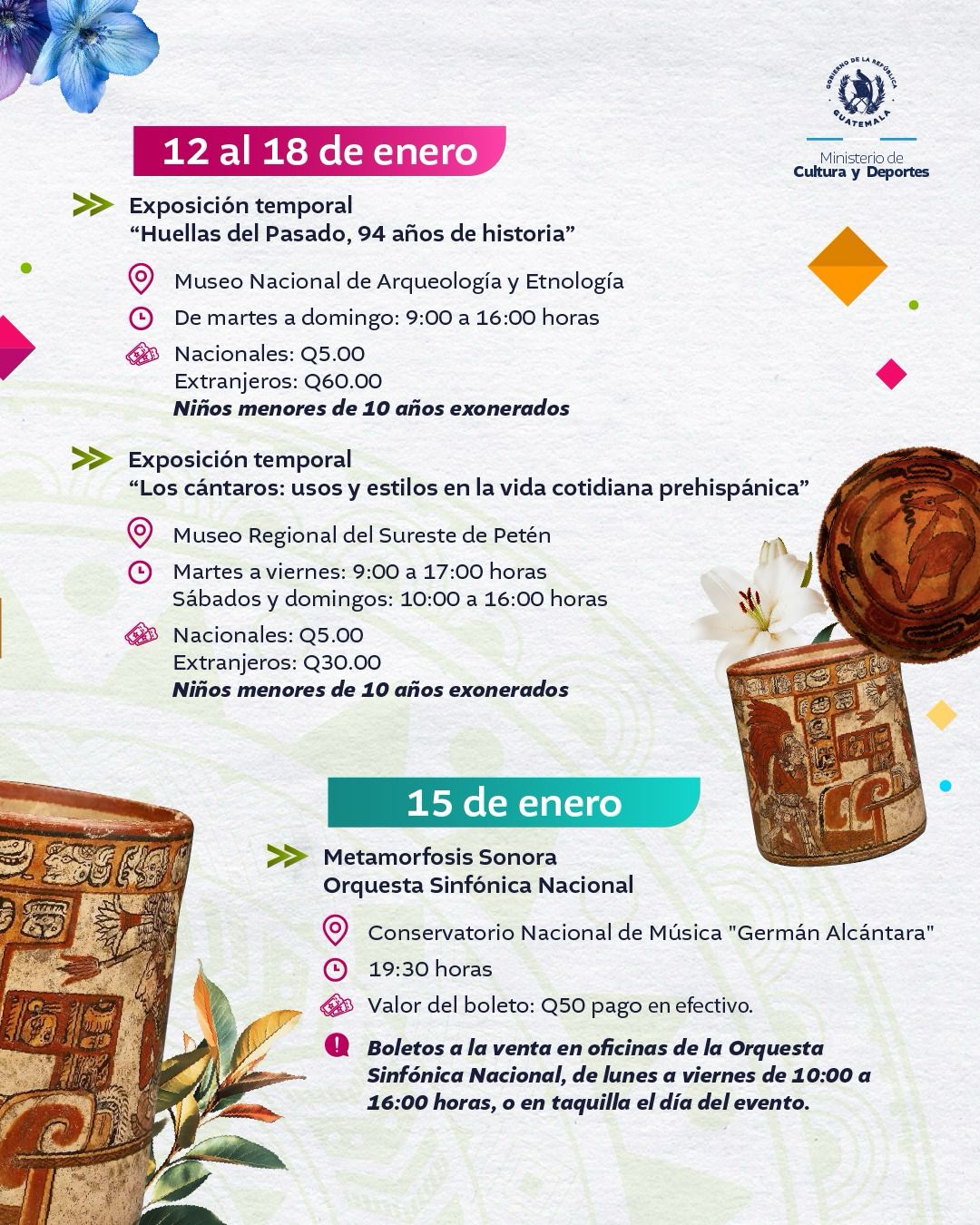 El Ministerio de Cultura y Deportes (MCD) presenta la agenda de actividades del 12 al 18 de enero de 2026.