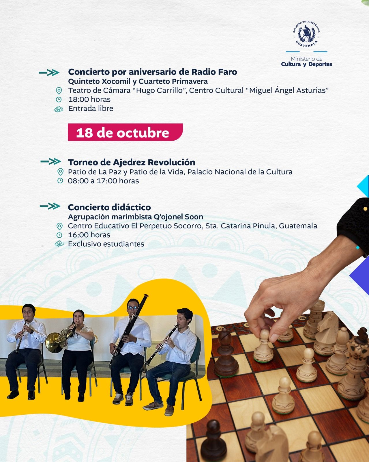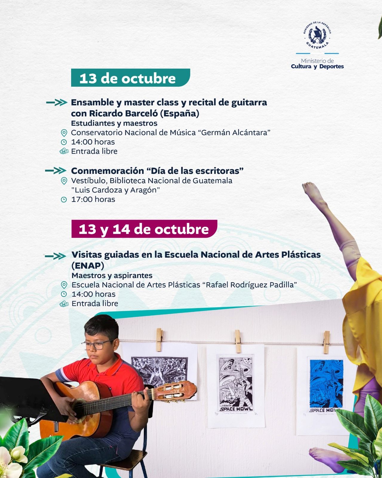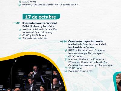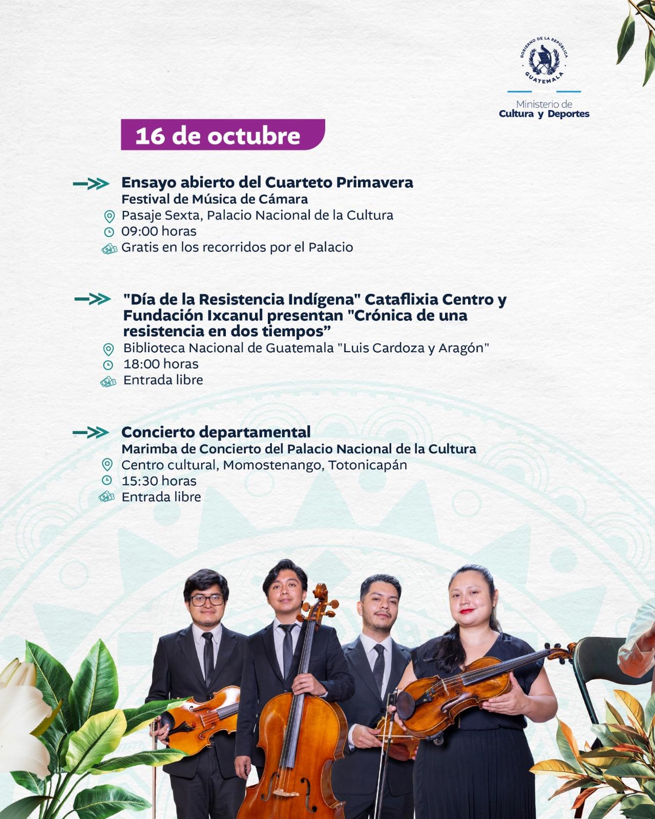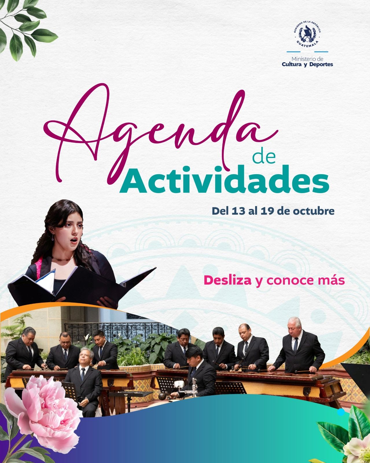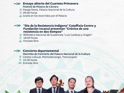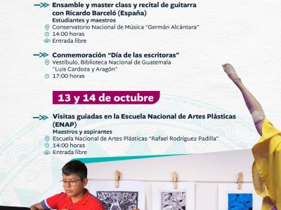 El Ministerio de Cultura y Deportes te comparte la agenda de actividades que se llevarán a cabo en el país del 13 al 19 de octubre de 2025.