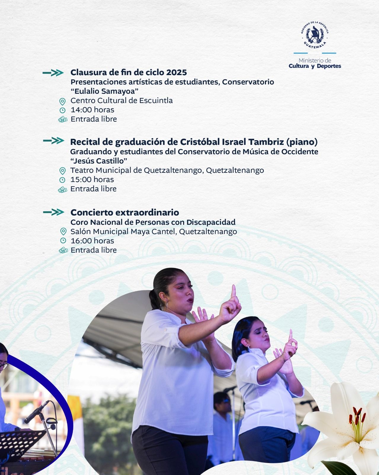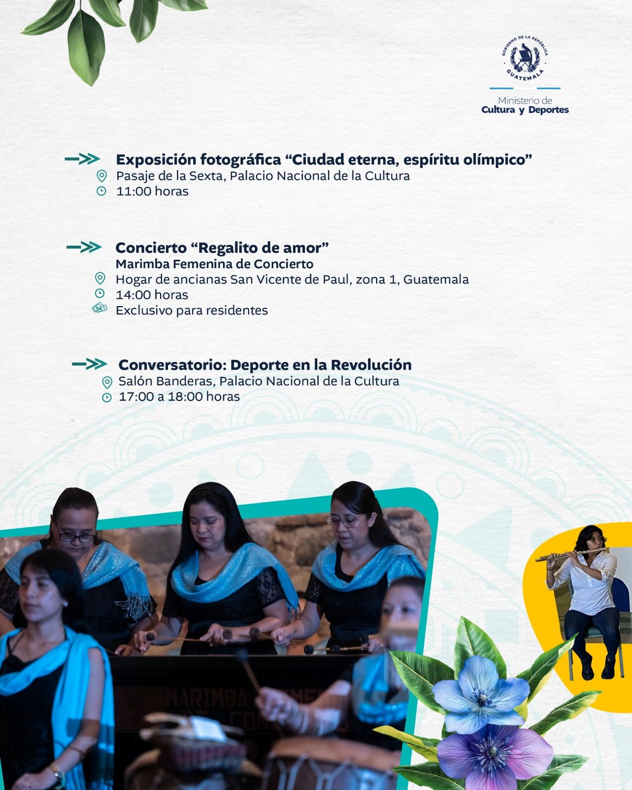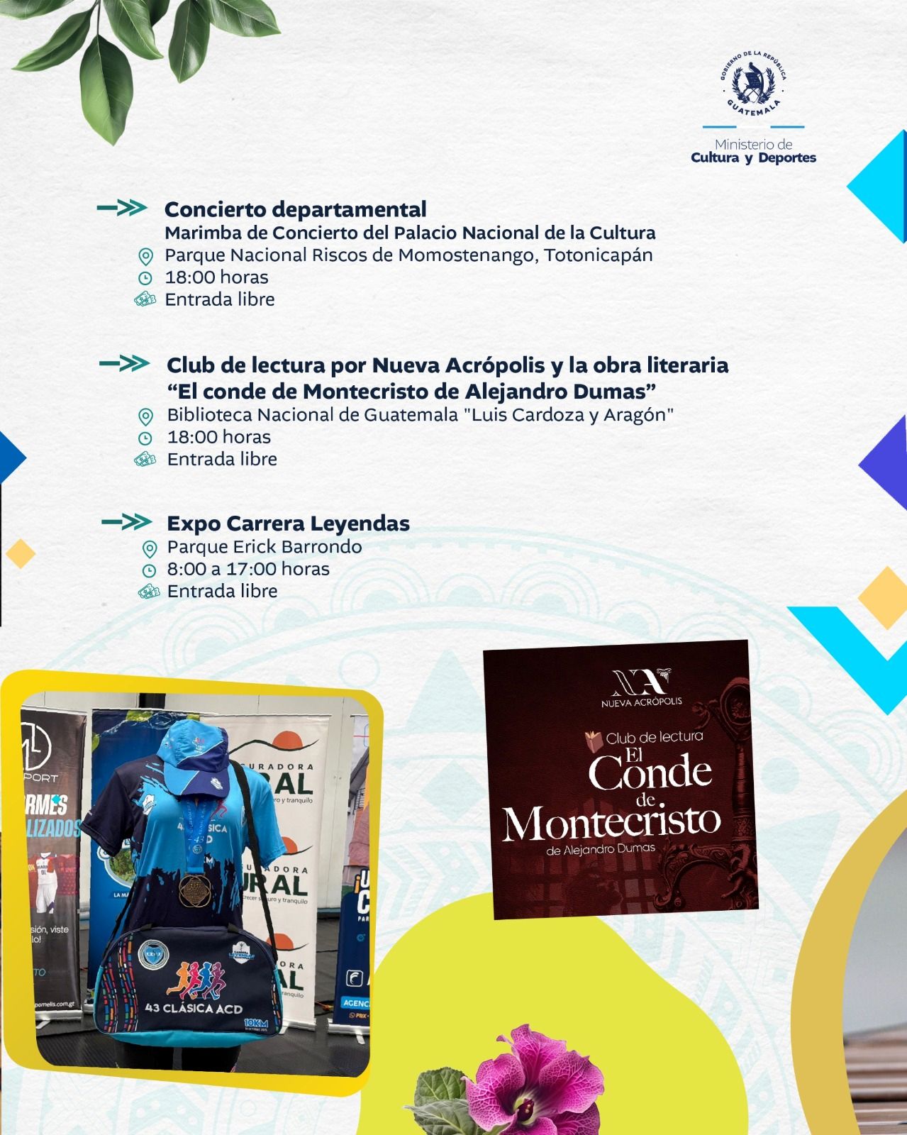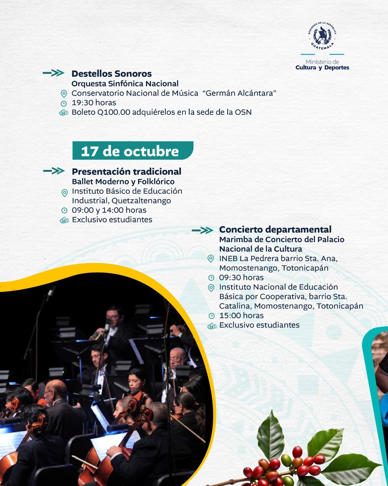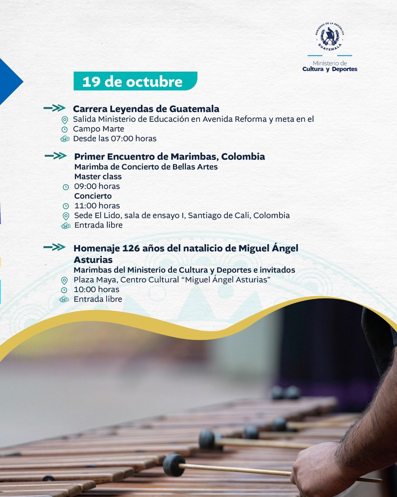 El Ministerio de Cultura y Deportes te comparte la agenda de actividades que se llevarán a cabo en el país del 13 al 19 de octubre de 2025.