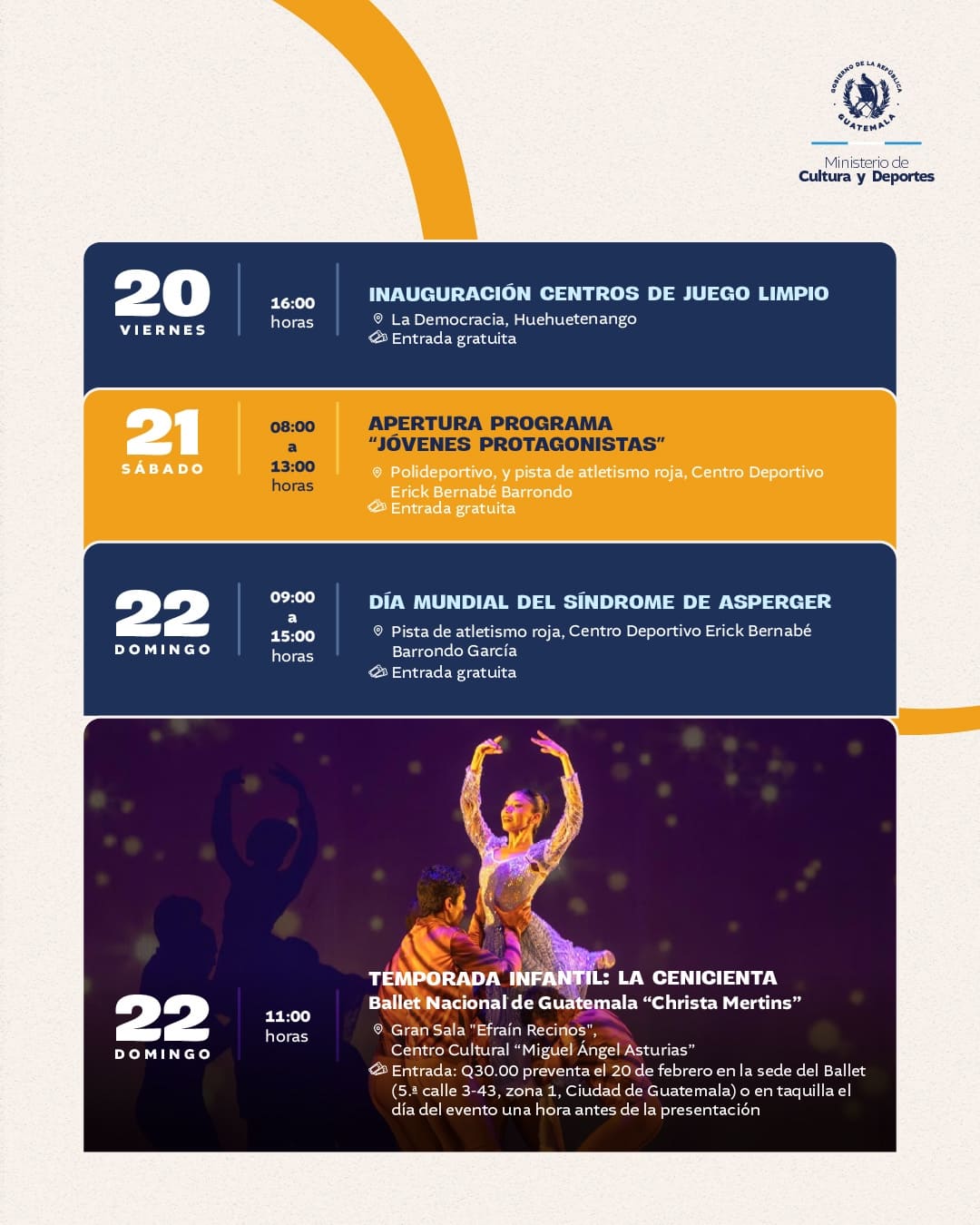 Agenda de actividades del 16 al 22 de febrero