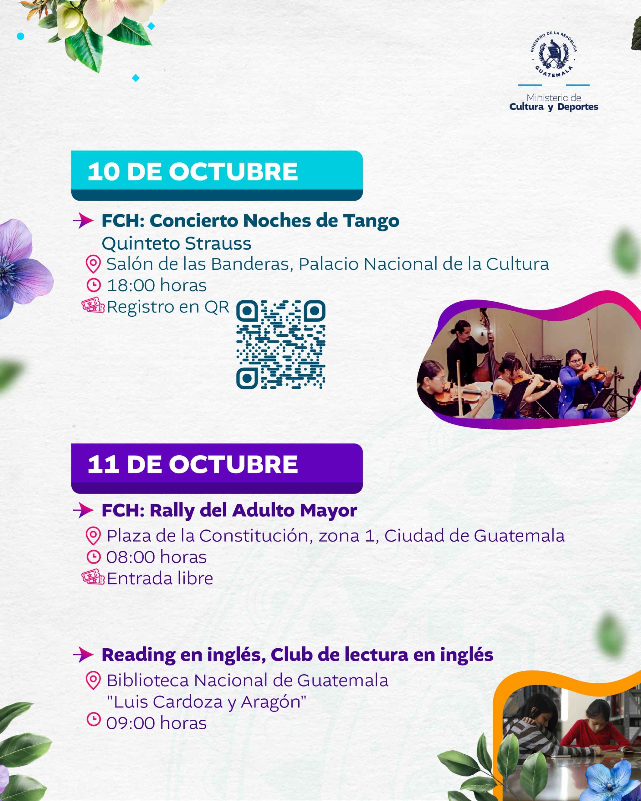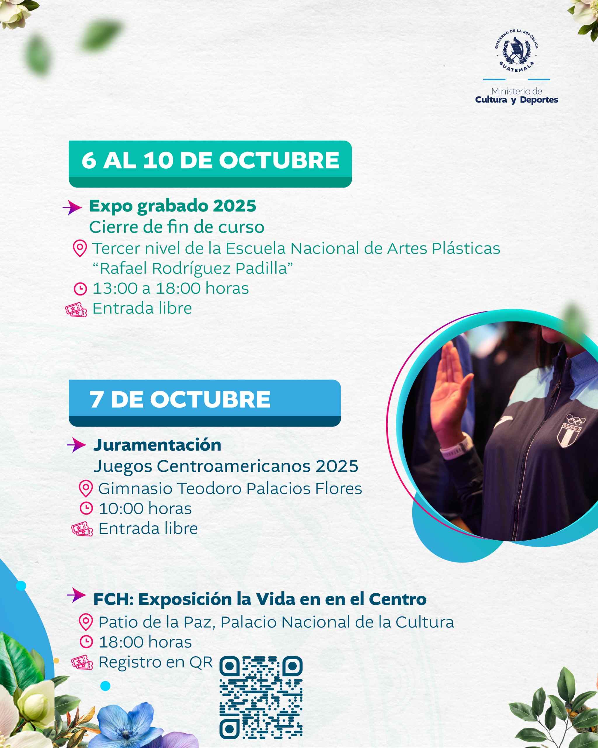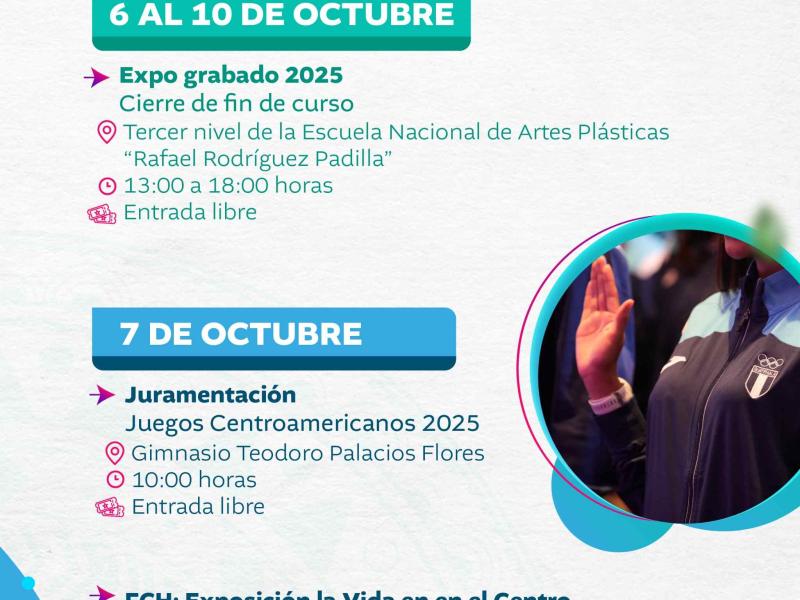 El Ministerio de Cultura y Deportes te presenta la agenda de actividades que se llevan a cabo del 6 al 12 de octubre de 2025.