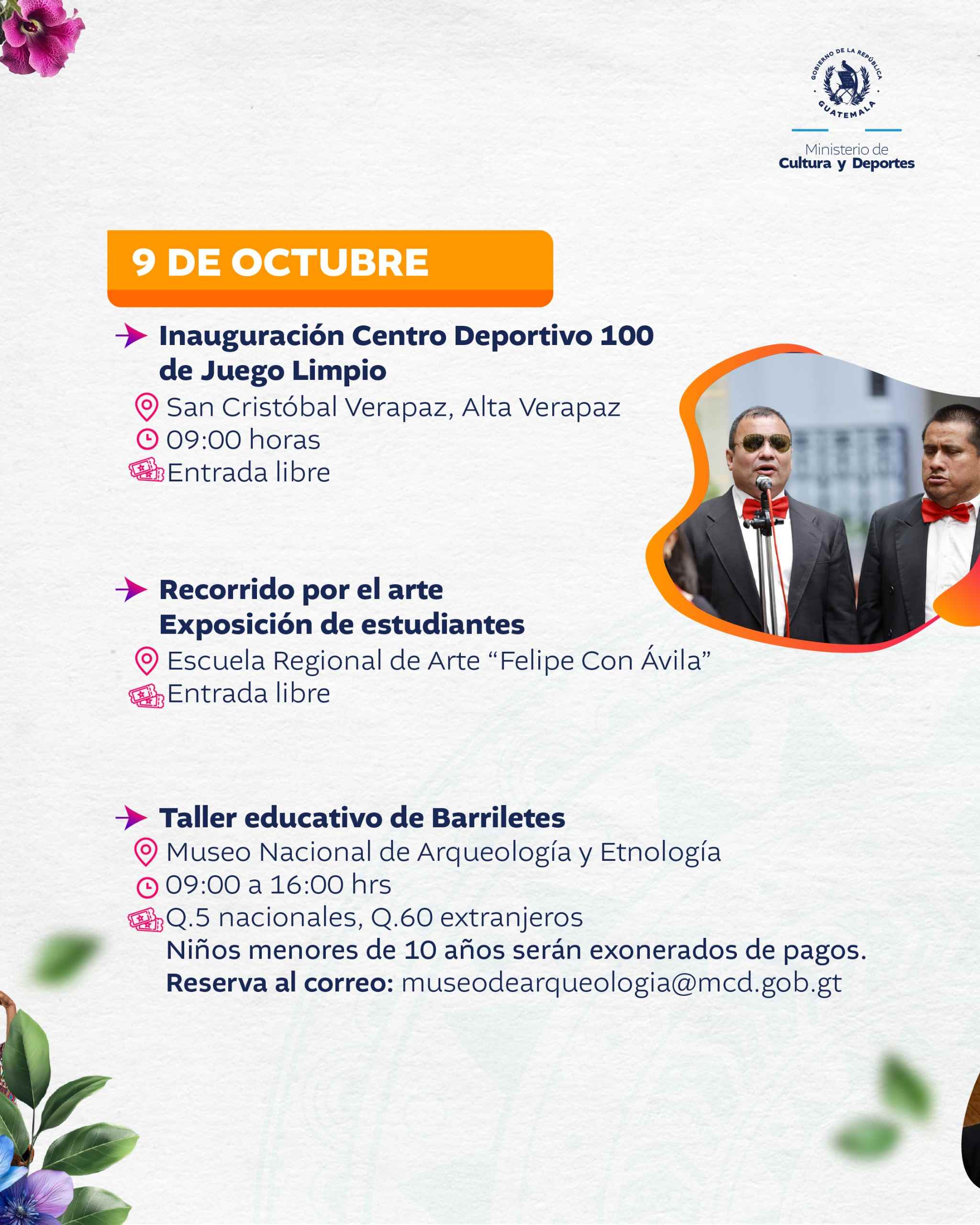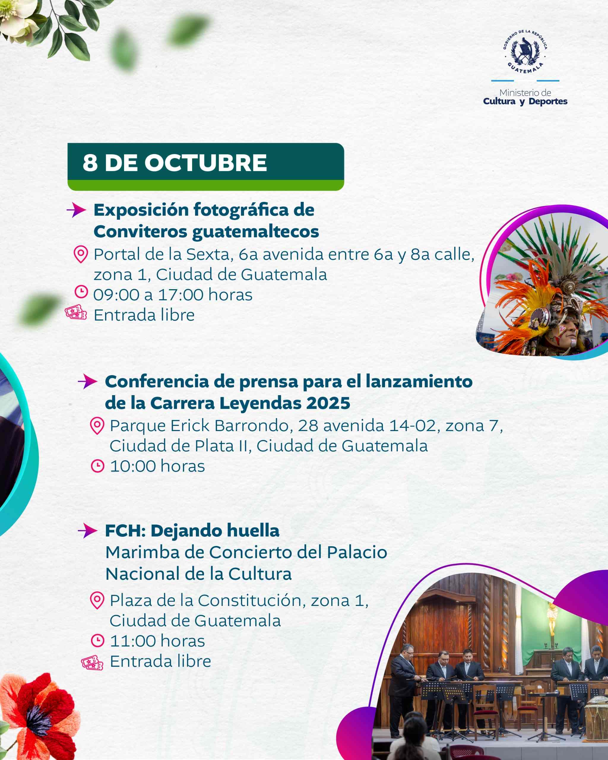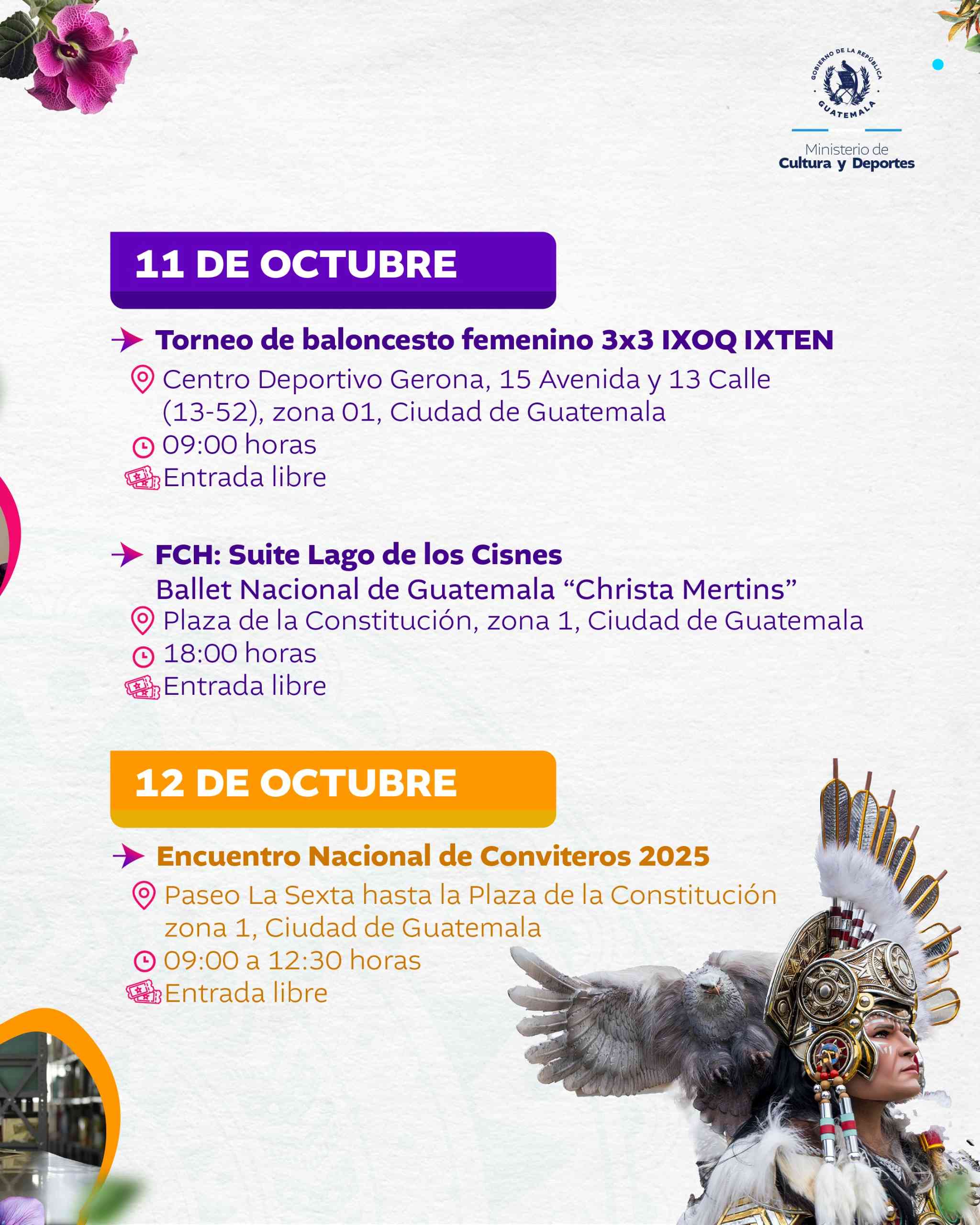 El Ministerio de Cultura y Deportes te presenta la agenda de actividades que se llevan a cabo del 6 al 12 de octubre de 2025.