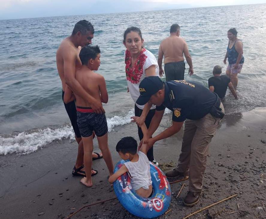 Agentes de Disetur rescatan a niños en el lago de Atitlán