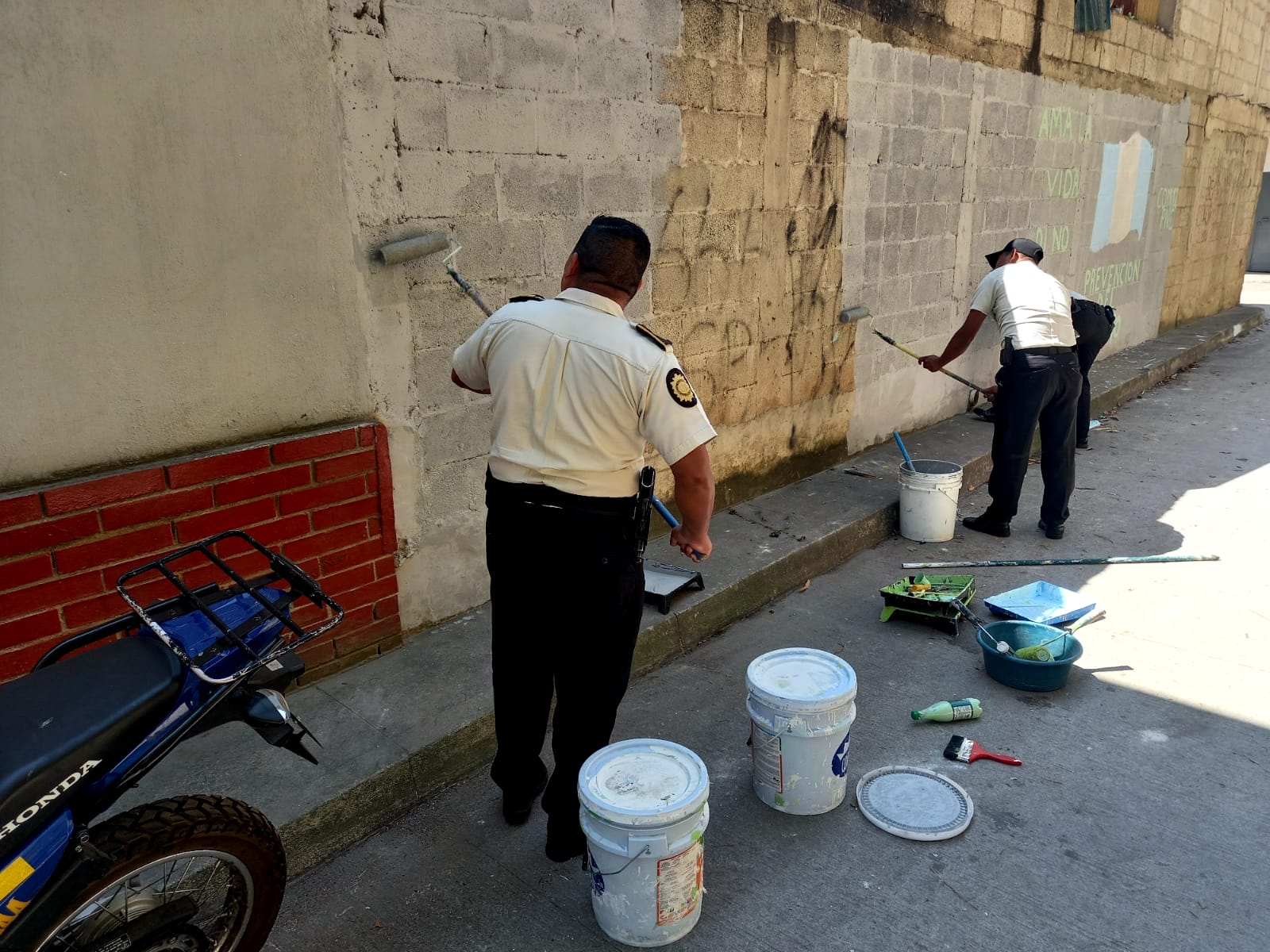 Agentes de la Subdirector General de Prevención del Delito de Policía Nacional Civil (SGPD-PNC), llevaron a cabo la recuperación de un espacio público en la 18 Avenida 1 calle Colonia Renacimiento Municipal, zona 18, donde eliminaron 3 grafitis de pandillas, que contaminan la visión de los niños, niñas y adolescentes.