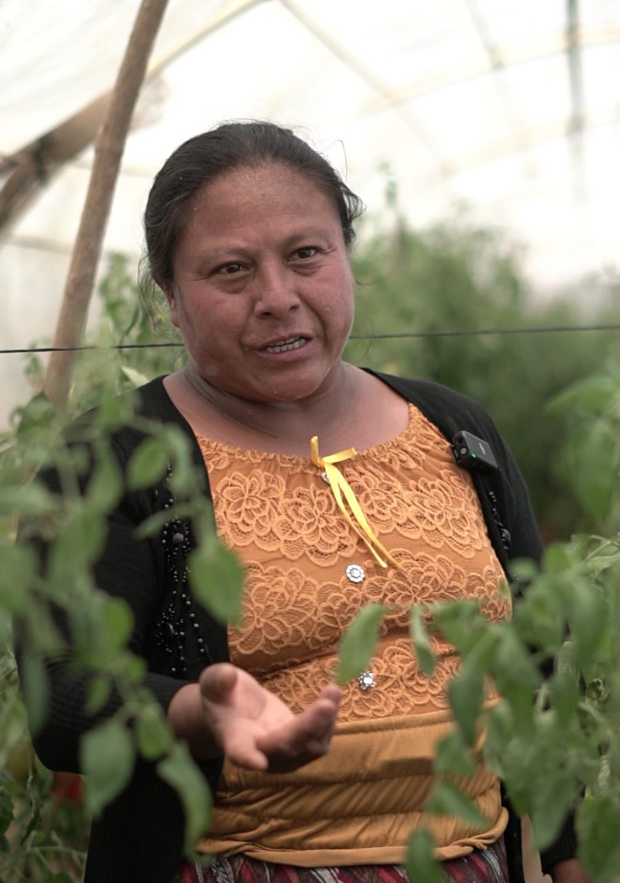 Cuando los rayos del sol atraviesan las hojas de los árboles en San Antonio Palopó, Olga Chaclán camina hacia el macrotúnel que construyó su esposo, en donde tiene la siembra de tomate cuyos frutos son parte de su alimentación y del sustento diario de su familia.